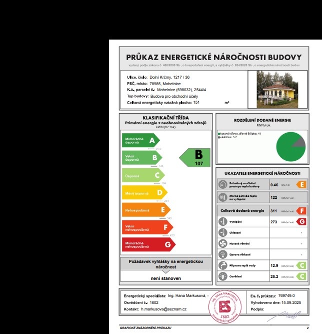 Celkové měsíční náklady na provoz budovy činní cca 2 000,-Kč (elektřina, odpady).