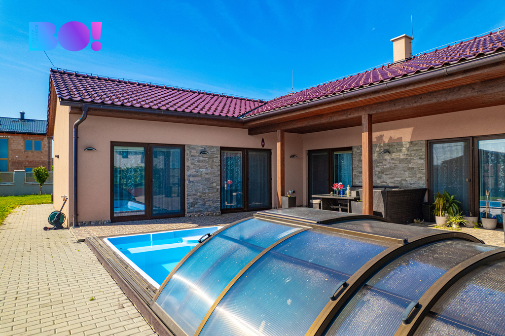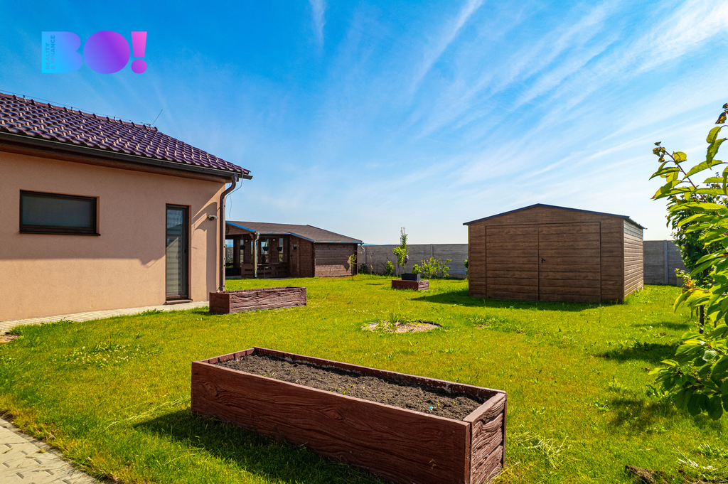 Na zahradě se nachází také vyhřívaný bazén s tepelným čerpadlem, který poskytuje dokonalé soukromí a vytváří ideální místo pro letní relaxaci. Součástí pozemku jsou také dvě samostatné zahradní stavby o celkové ploše přes 30 m², které mohou sloužit například jako odpočinková zóna, letní posezení, sklad zahradní techniky nebo hobby prostor.