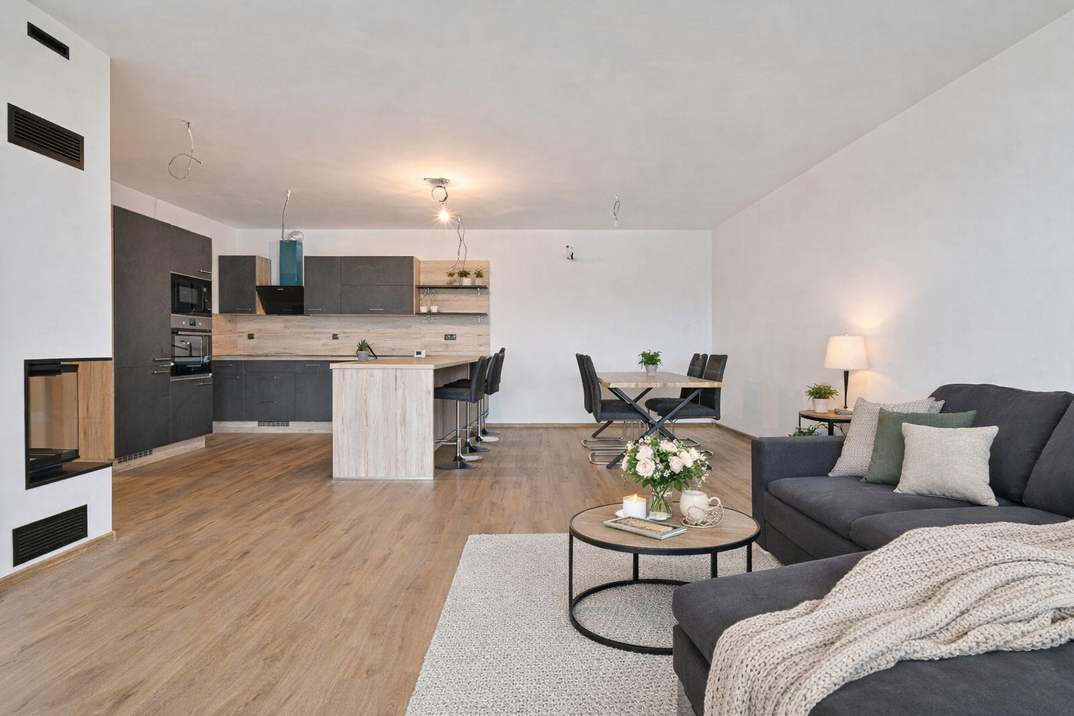 První čtyři fotografie jsou vizualizace s nábytkem.