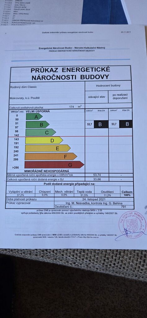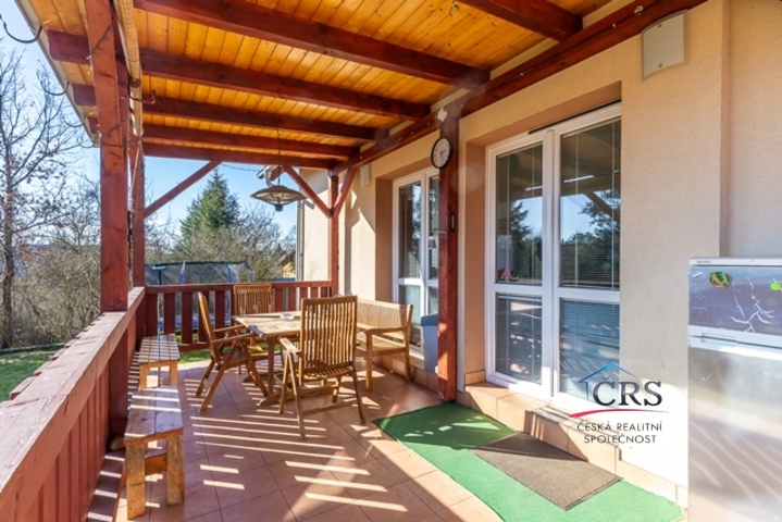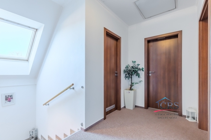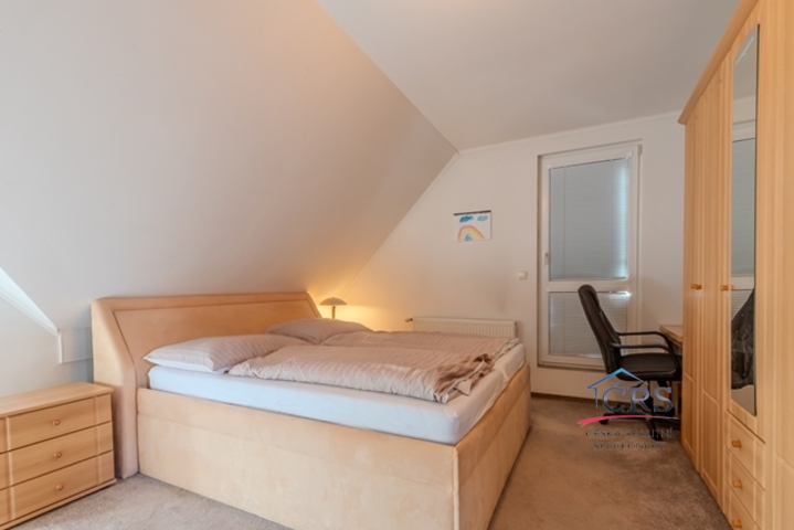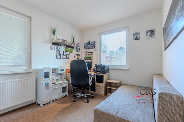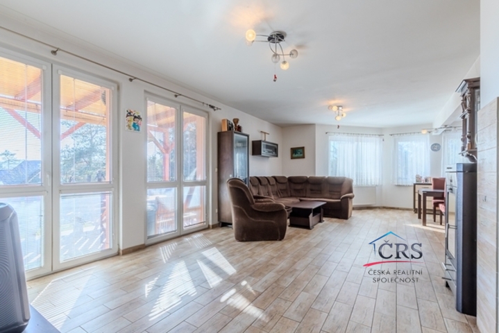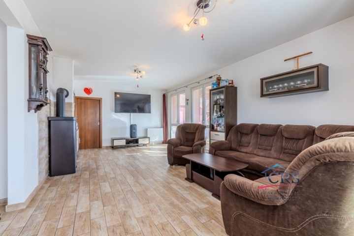 V patře jsou tři útulné ložnice a koupelna s vanou. Dům je světlý, funkční a působí velmi příjemnou, domáckou atmosférou. Vytápění zajišťuje elektrokotel doplněný krbovou vložkou, TUV v boileru. Dům je energeticky úsporný (PENB – třída B), zatepleno 15 cm. IS. elektrika, vlastní vrtaná studna, jímka 13 m3.