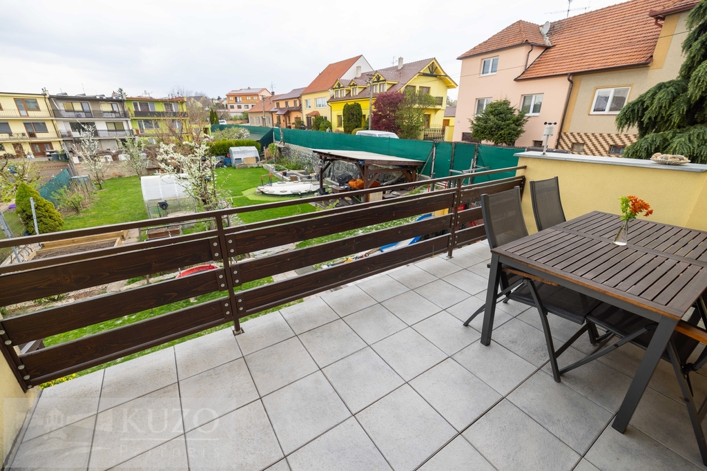 Byt o celkové ploše 128m2, 3+1 disponuje lodžií o velikosti 8 m². Velkým bonusem je samostatná jednotka 1+kk ( 20m2) s vlastní koupelnou v suterénu se samostatným vstupem, kterou lze případně propojit s dětským pokojem z garsoniéry je vstup na terasu a zahradu. K bytu dále náleží dva sklepy, společná kolárna a upravená zahrada s vyvýšenými záhony se závlahou.
