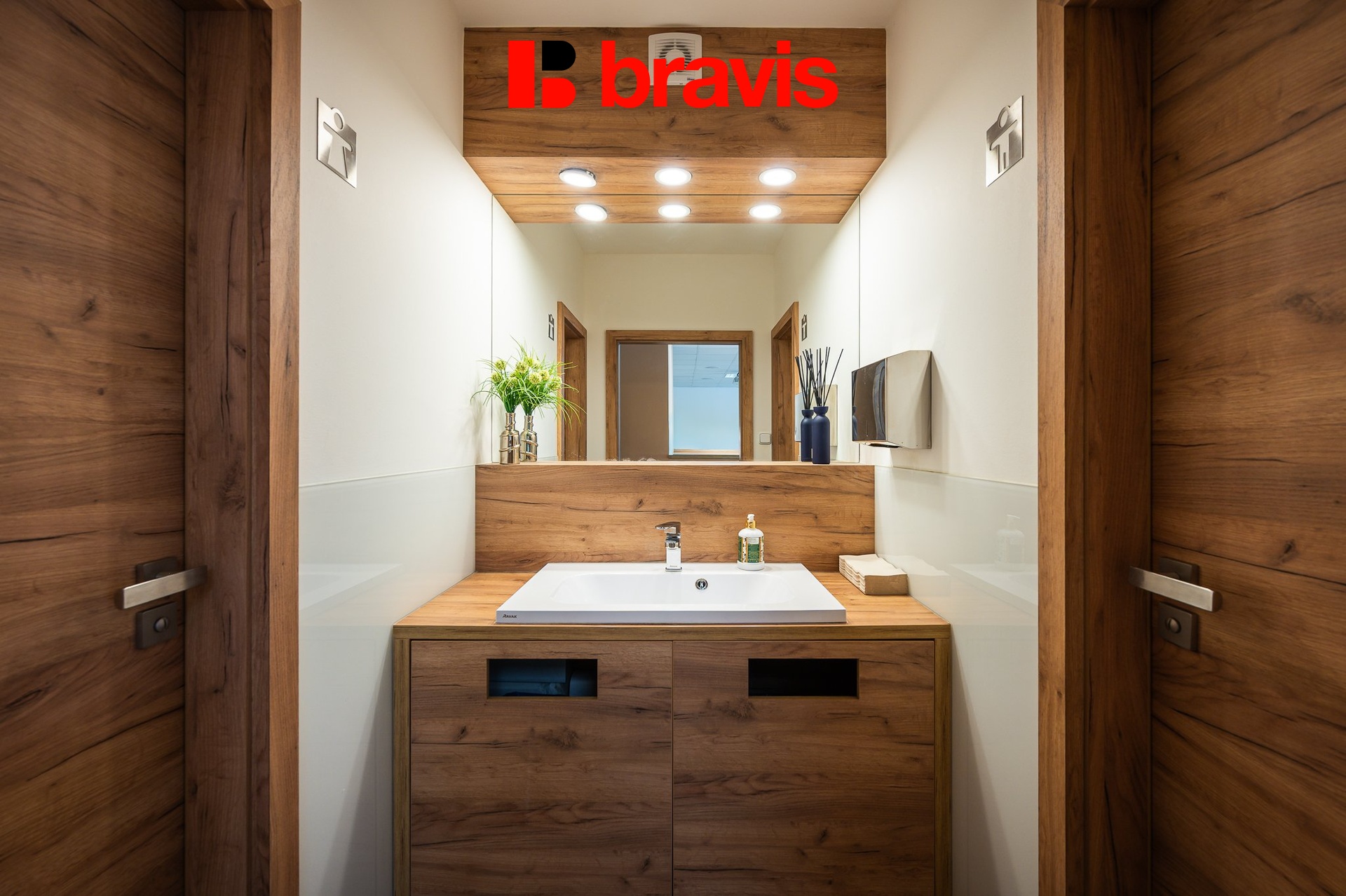 • Administrativa a vzdělávání: V patře se nachází školící místnost s projekcí a samostatná kancelář.