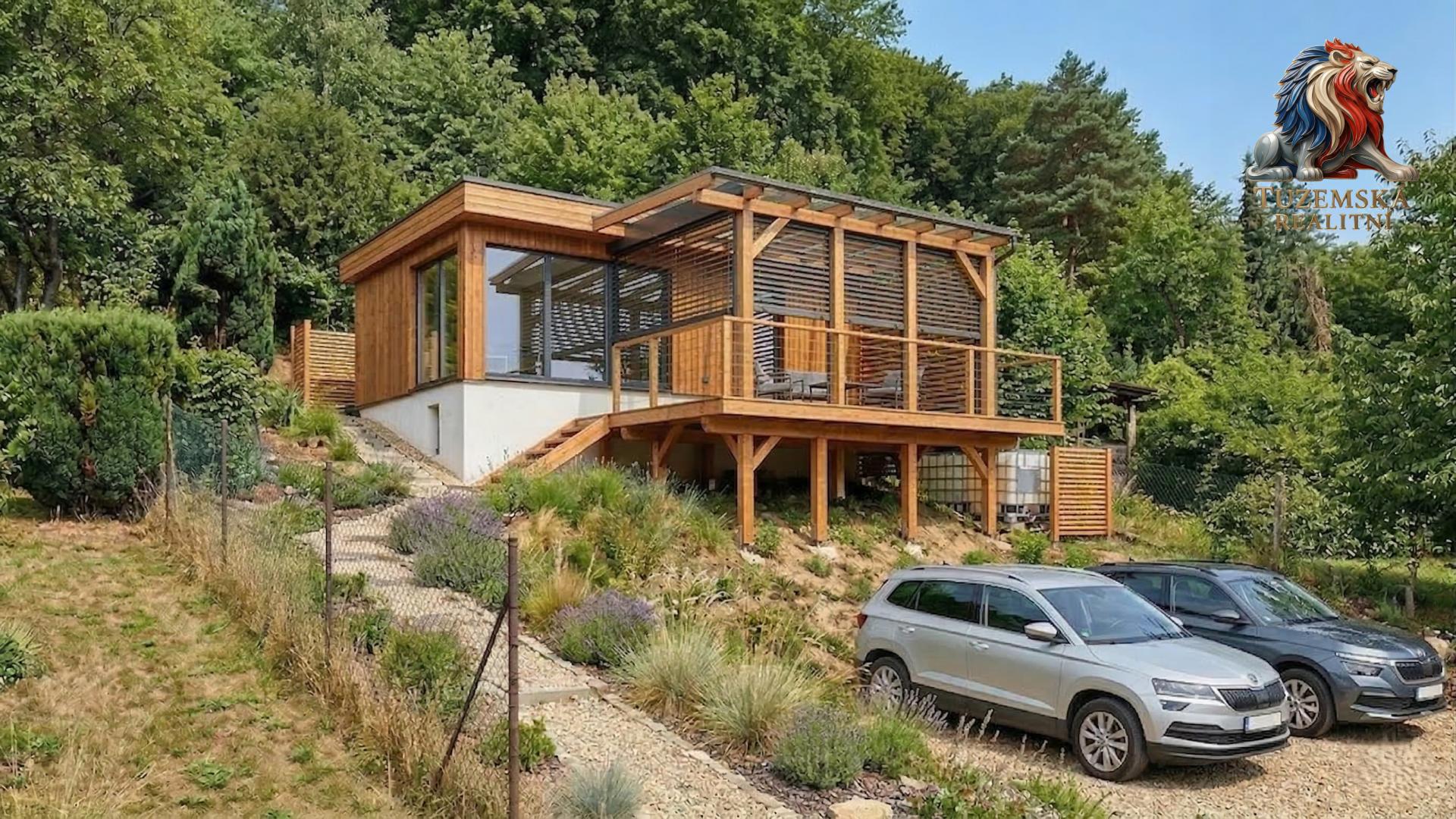 Příjezd k chatě je poměrně komfortní po takřka vodorovné zahradní městské cestě. Na pozemku v dolní části v tuto chvíli zaparkujete 2 osobní auta.