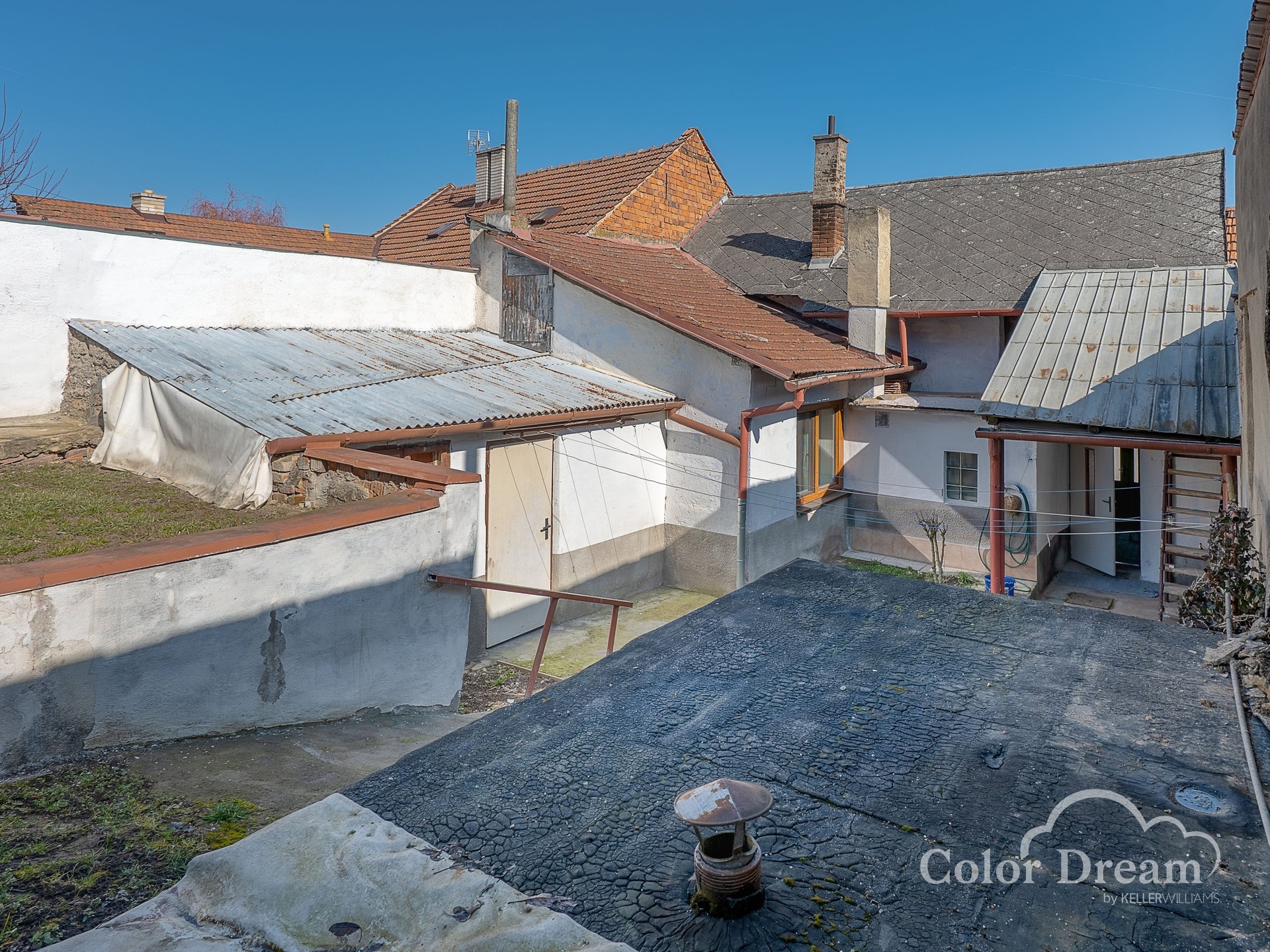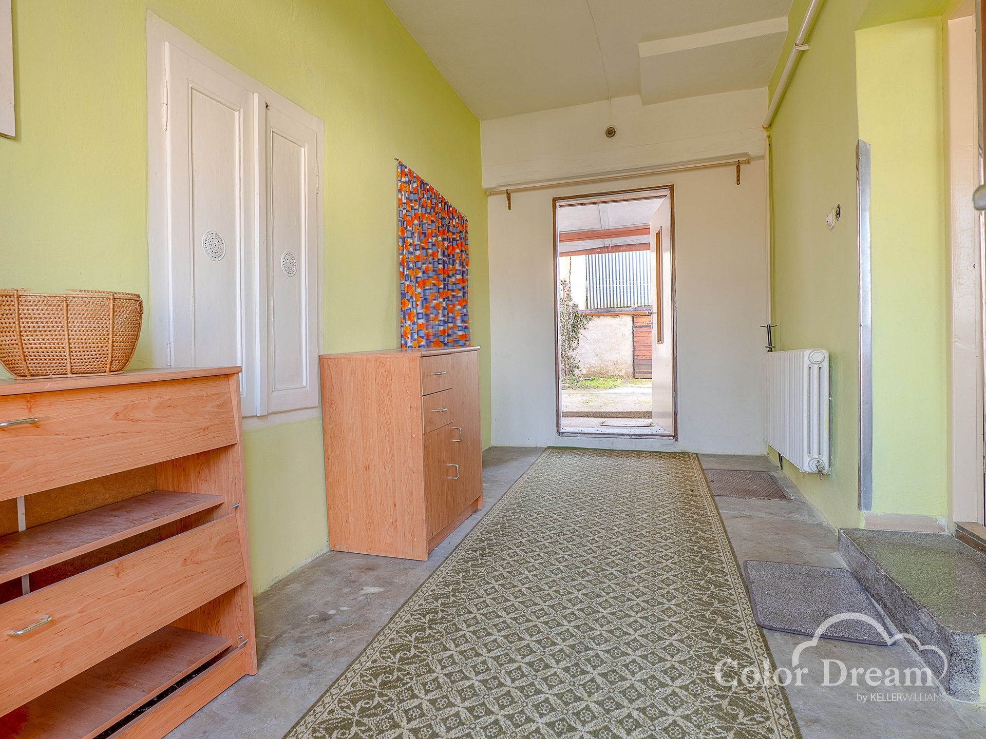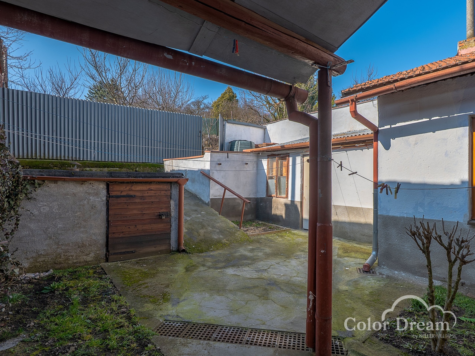 K domu náleží prostorná půda vhodná k vestavbě obytného podkroví nebo jako velký úložný prostor. Součástí je sklep, vlastní studna a upravená, prosvětlená zahrada s možností terasy či menšího ovocného sadu. Praktickým benefitem je příjezd na pozemek ze zadní strany, což usnadňuje parkování nebo přístup pro zahradní techniku. Okna jsou plastová, což zlepšuje tepelně-izolační vlastnosti a snižuje nároky na údržbu.