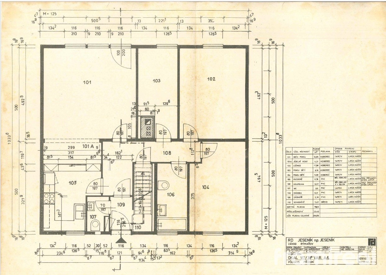 - hlavní obytné podlaží o výměře cca 104 m² (4+1)