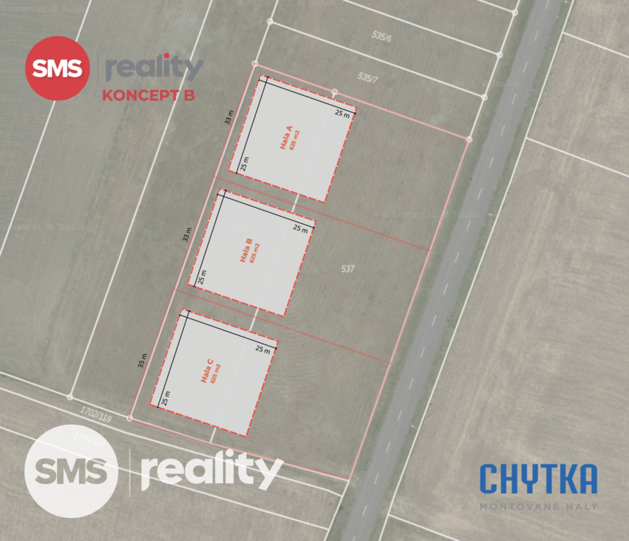 - Stabilní prostředí – lokalita není určena pro bydlení, takže nehrozí budoucí konflikty s okolní zástavbou.