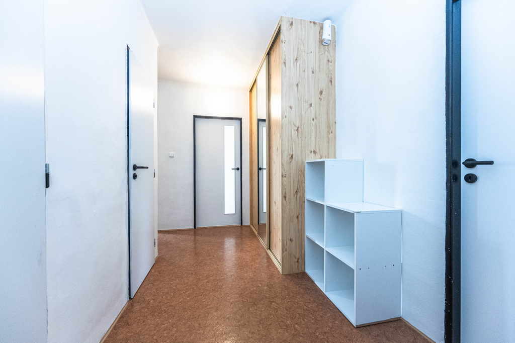 Bytová jednotka 3+1 s lodžií situovaná ve 2.patře zděného bytového domu s vlastní garáží 20,9 m2 a dílnou 11,2 m2. Tento slunný byt zahrnuje obývací pokoj, 2x ložnici, prostornou chodbu, kuchyni, koupelnu s vanou, samostatné WC a technickou místnost. Orientace pokoje s lodžií a obývacího pokoje je na jih, zbytek bytu pak na sever. Jednotka je ve velmi dobrém udržovaném stavu po průběžných opravách (rozvody, plastová okna, štuky, výmalba, plovoucí podlahy, vytápění, kuchyňská linka, ...). Vytápění je elektrické převážně novými klimatizačními jednotkami, ohřev vody el. zásobníkovým ohřívačem, v domě je k dispozici plyn, který může být využit jako alternativní zdroj vytápění. Bytový dům pouze se 4 byty je řádně spravován fungujícím SVJ. Dále možnost užívat 1/4 rozlehlé půdy situované nad prodávaným bytem či domluvit rozšíření bytu.