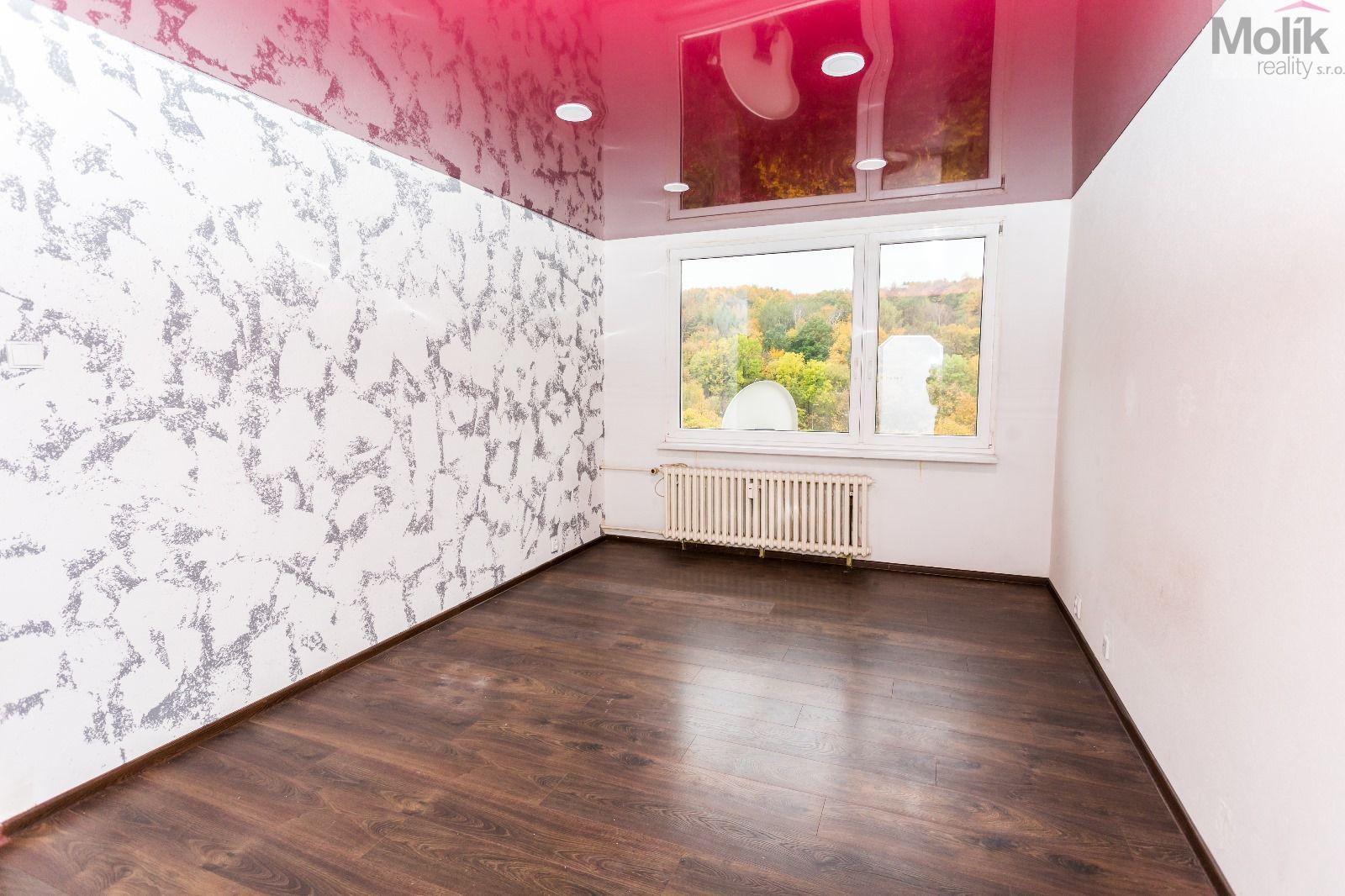Byt prošel kompletní rekonstrukcí rozšíření koupelny, oddělení kuchyně od obývacího pokoje, nové rozvody vody, napínané fóliové stropy a nové podlahy.