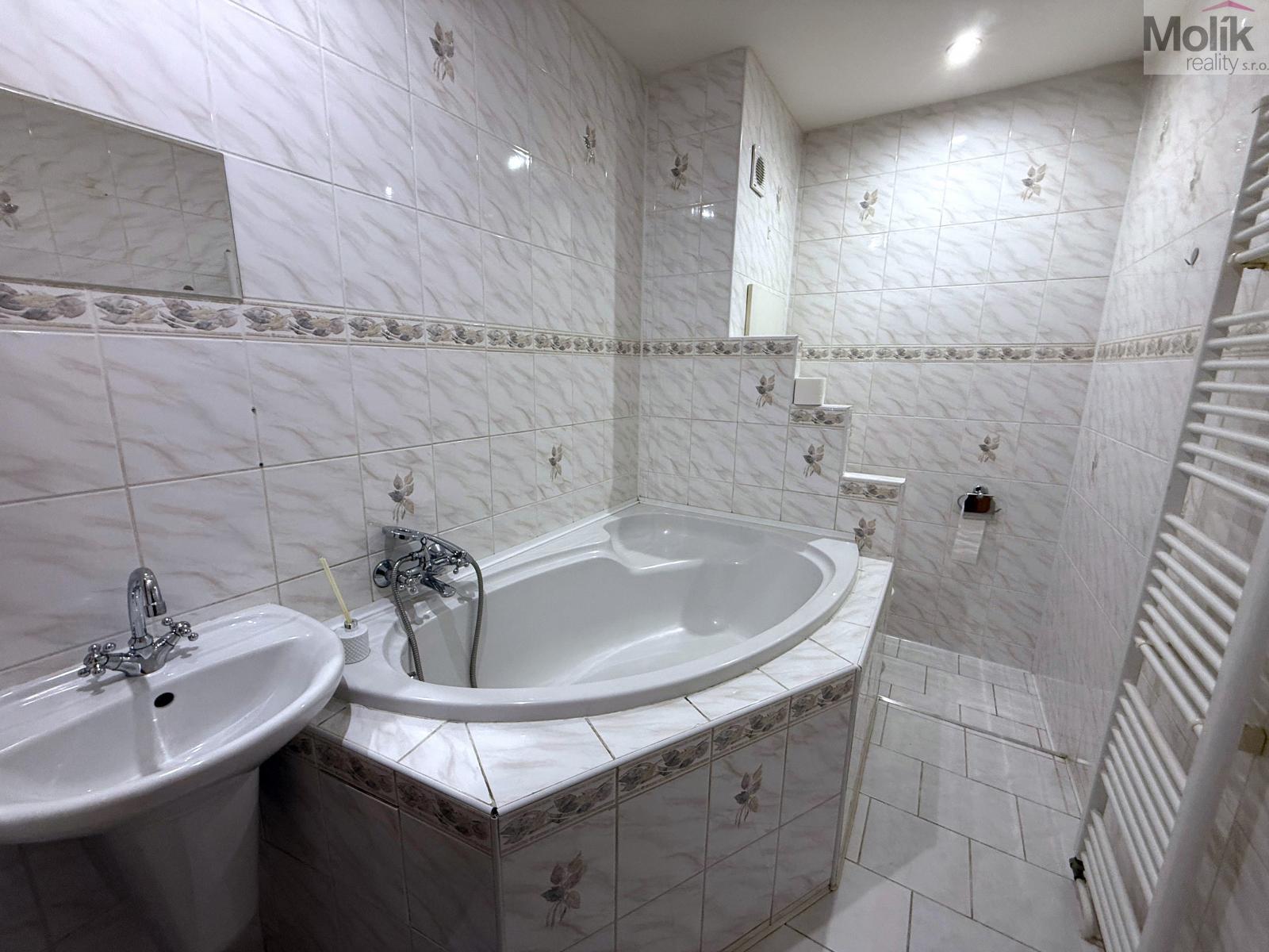 Dispozice bytu zahrnuje předsíň, kuchyně, obývací pokoj, dva pokoje, koupelnu s rohovou vanou a WC. V bytě zůstává veškeré vybavení na fotkách.