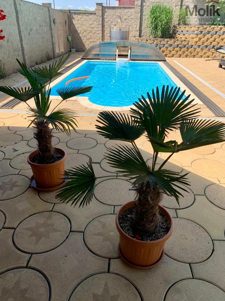 Na pozemku se nachází veliký krytý zapuštěný bazén s protiproudem a vyhříváním, dále se nachází veliká garáž pro dva automobily a upravené kontejnery pro sklad nářadí.