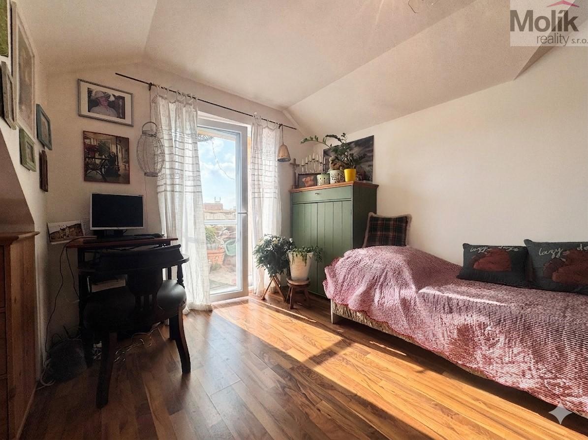 Hledáte bydlení, které v sobě kombinuje velkorysý prostor, útulnou atmosféru podkroví a maximální bezpečí? Nabízíme k prodeji výjimečný mezonetový byt o užitné ploše 107 m2, který nabízí venkovní prostor pro relaxaci a to v podobě podílu na zahradě přímo u domu.