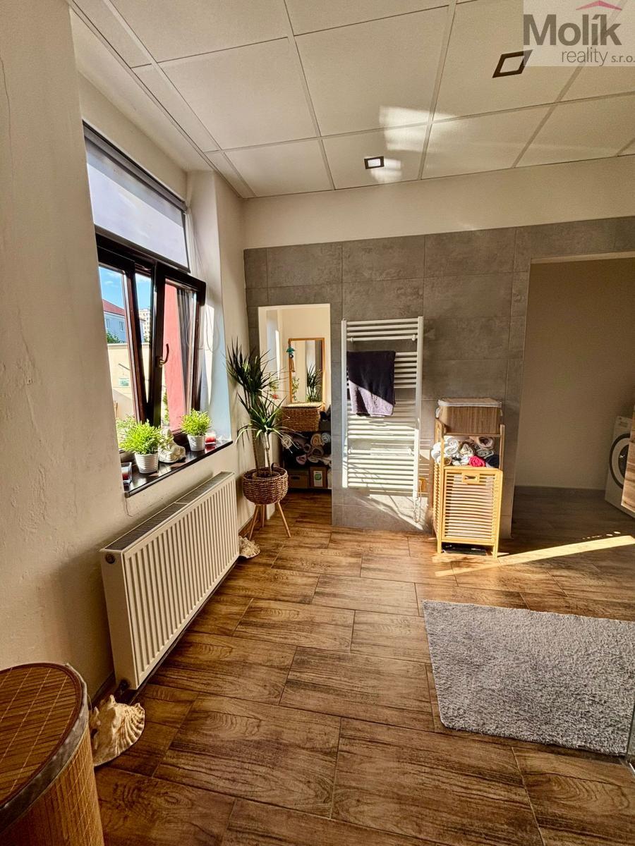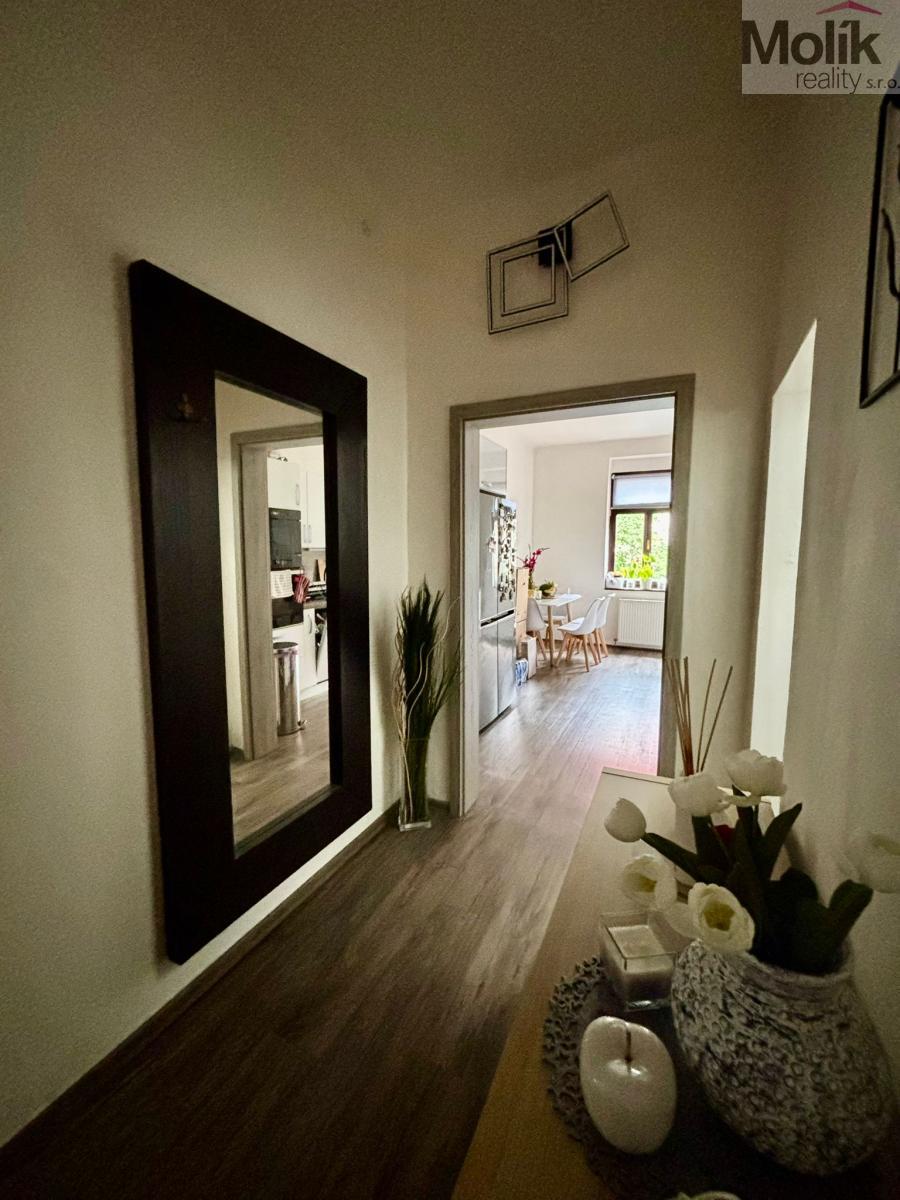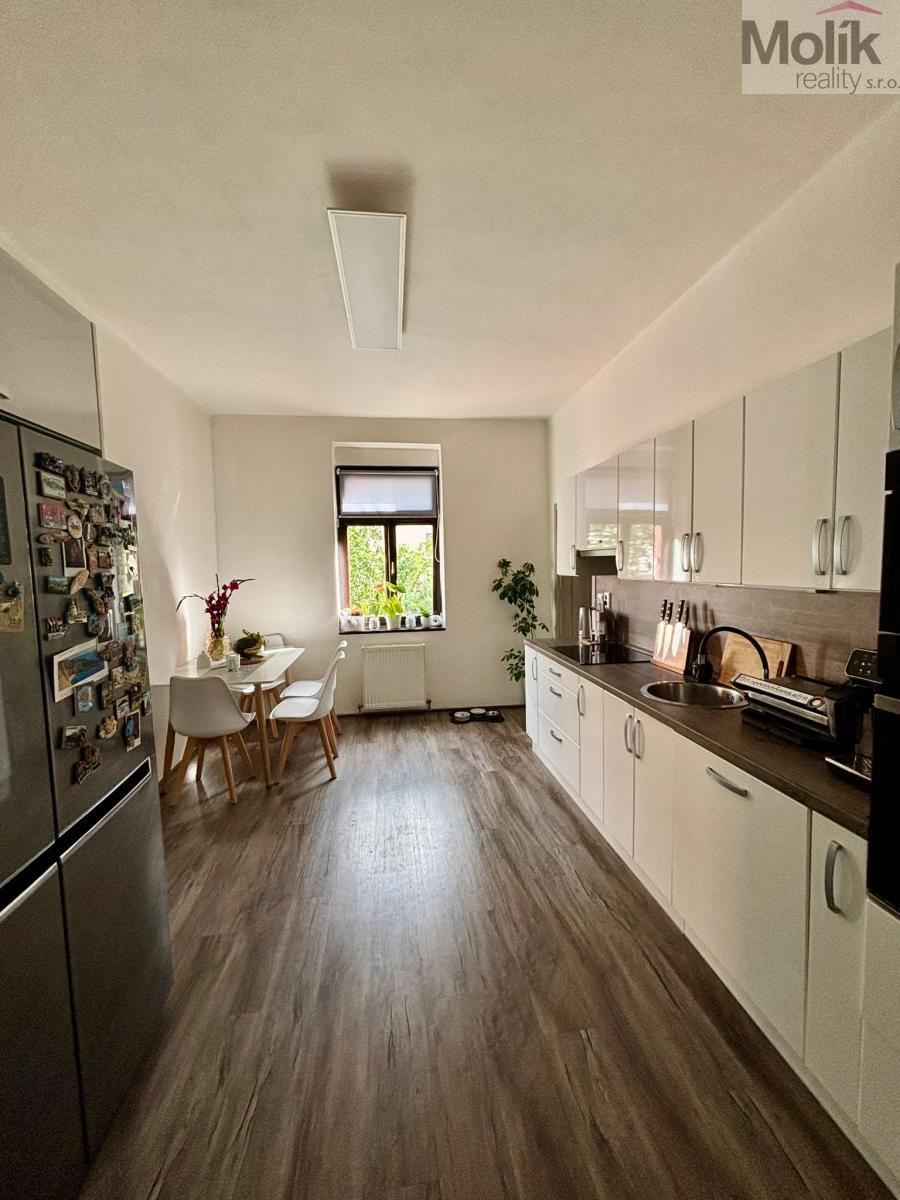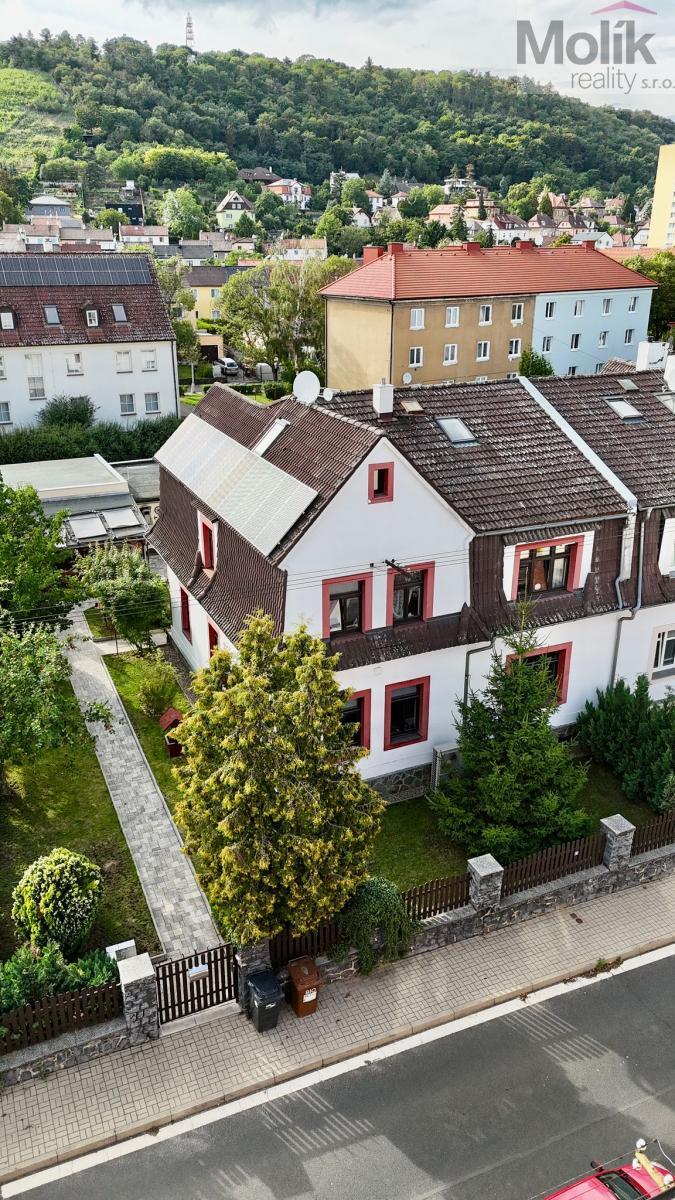 V přízemí se nachází byt o dispozici 3+1 s kuchyňskou linkou, šatnou a koupelnou se sprchovým koutem. Ve druhém nadzemním podlaží jsou další tři pokoje - jeden z nich má balkon s krásným výhledem na hrad Hněvín - a prostorná kuchyň s moderní linkou do tvaru L s ostrůvkem a vestavěnými spotřebiči. Samozřejmostí je koupelna se sprchovým koutem. Toto patro je propojeno s podkrovím, které nabízí další obytné místnosti, ideální například jako dětské pokoje. Také zde je k dispozici samostatná koupelna.