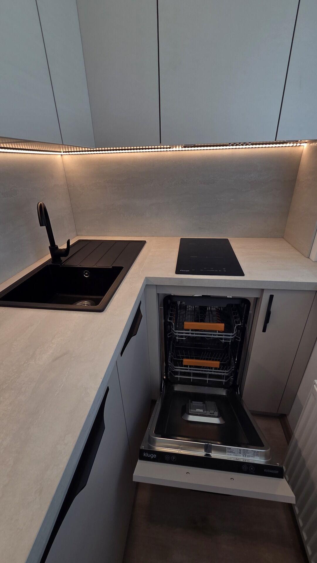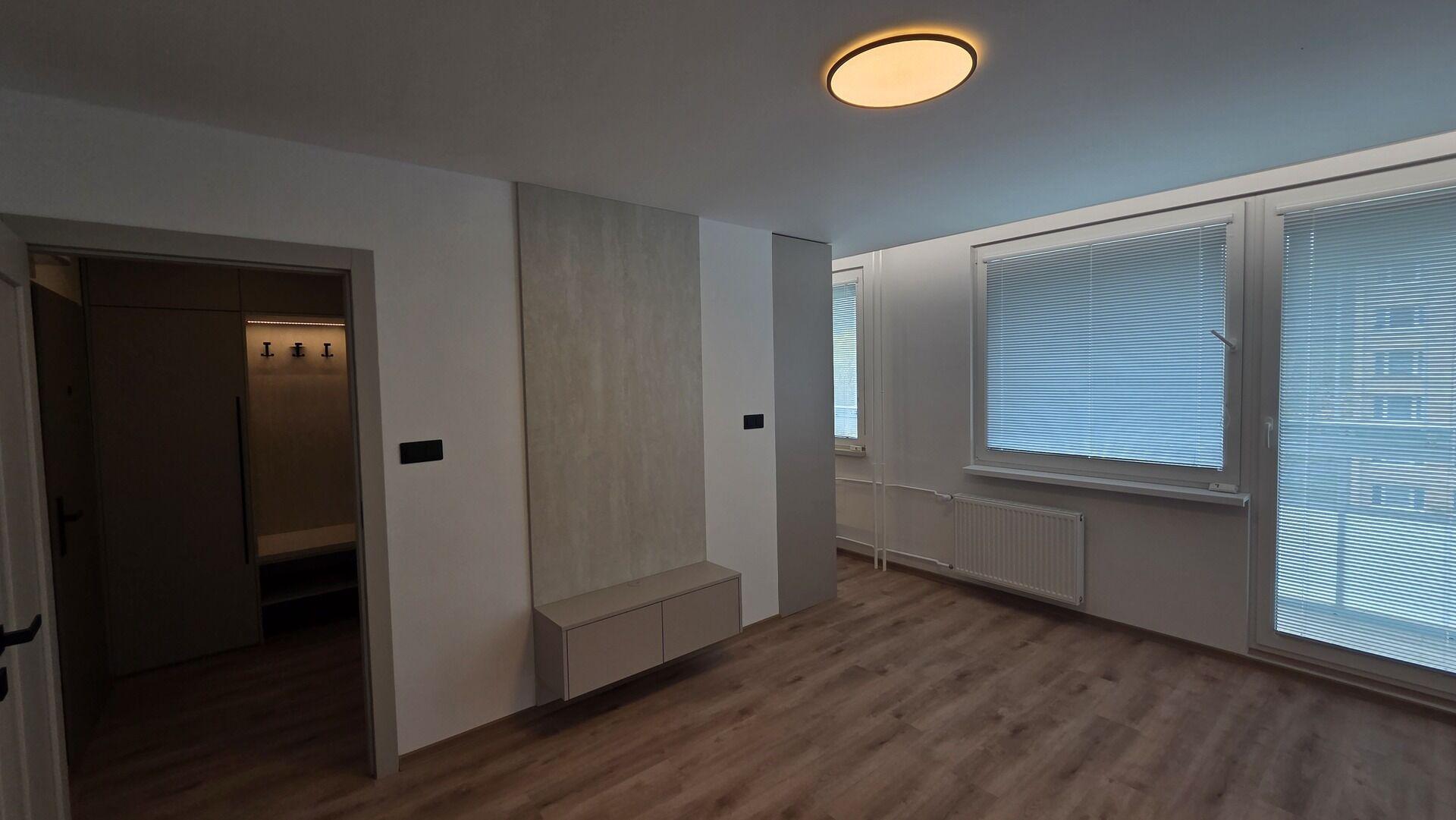 V bytě je vše nové, nové podlahy, nová koupelna, nová kuchyňská linka, nová světla, vypínače, bezfalcové dveře s obložkami. Celý interiér je pečlivě sladěný do nejmenšího detailu a zároveň každý detail je důležitý. Bezesporu největší dominantou bytu je kuchyňská linka s vestavěnými spotřebiči, která krásně zapadla do tohoto bytu. Vestavěná šatní skříň v chodbě nabízí dostatek úložného prostoru. Vše bylo vyrobeno na míru pro tuto bytovou jednotku, pro Vás a Vaše příjemné bydlení. Velkým bonusem tohoto bytu je zasklená 3m2 velká lodžie, ze které je krásný výhled a je ideální pro relaxaci.