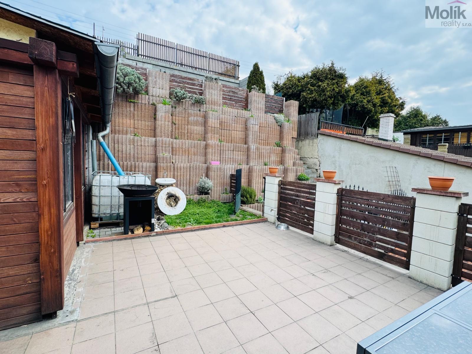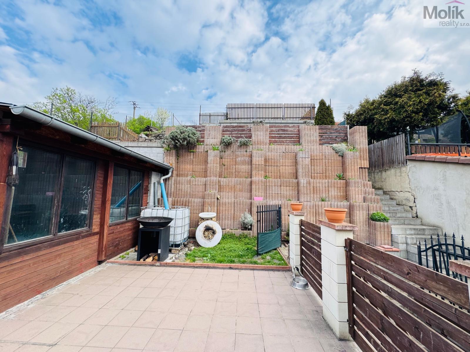 Dům byl zateplen před deseti lety, současně byla vyměněna střecha za pálené tašky, okna za plastová dvojskla, což zaručuje dobrou tepelnou izolaci a snižuje náklady na energie. Elektroinstalace je v mědi. V prvním nadzemním podlaží se nachází vstupní chodba, dětský pokoj, kuchyně, obývací pokoj, koupelna s vanou i sprchovým koutem a toaleta. Kuchyňská linka je zánovní, v dobrém stavu, podlahy plovoucí v kombinaci s dlažbou. Ve druhém nadzemním podlaží jsou dva pokoje, společenský prostor se vstupem na terasu s výhledem do zahrady. Stropy jsou železobetonové, půda není zateplena. Pro vytápění domu slouží elektrický kotel s expanzní nádobou, který je napojen na radiátory. K dispozici jsou také krbová kamna s výměníkem, která jsou propojena se zásobníkem vody. Vytápění lze ovládat termostaty, nebo přes wifi, což přináší úsporu elektřiny. Pro ohřev vody je k dispozici bojler o kapacitě 200 litrů. Voda a kanalizace jsou obecní, plyn není k dispozici. K domu náleží také kaskádovitá zahrada, dílna a sklad u terasy. V přízemí se nachází malý suchý sklep. Součástí je také garáž o rozměrech 3,5 x 7,7 metrů se sekčními vraty, které lze ovládat dálkově. Před domem je také možnost parkování. V současné době je dům obsazen slušnými nájemníky. Pokud hledáte klidné a pohodlné, nebo možnost investice, tento dům je ideální volbou pro Vás. Více informací u makléře.