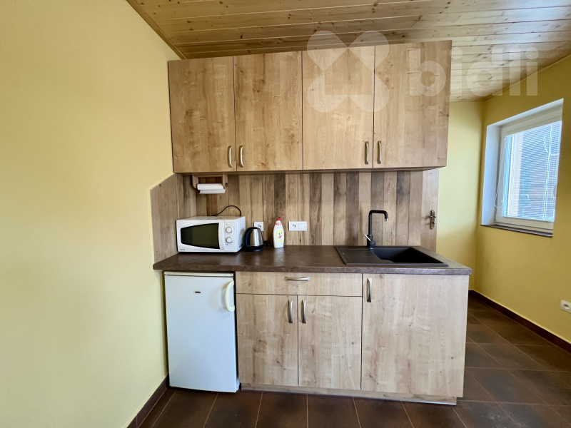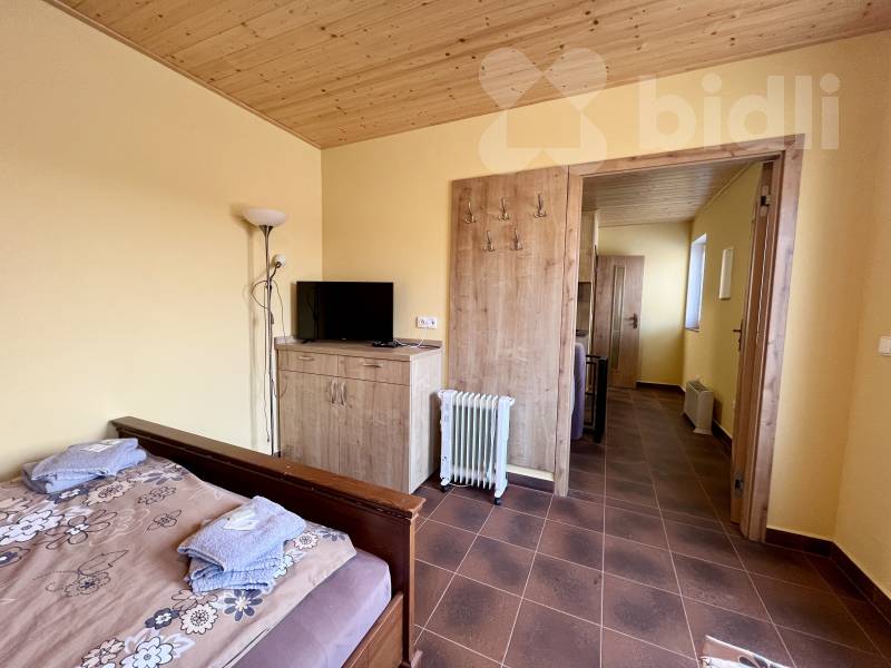 Byt je prakticky řešen a nabízí: samostatný obytný pokoj s dostatkem prostoru pro spaní i odpočinek plně vybavenou kuchyň (kuchyňská linka, spotřebiče, úložné prostory) samostatnou koupelnu a samostatné WC.