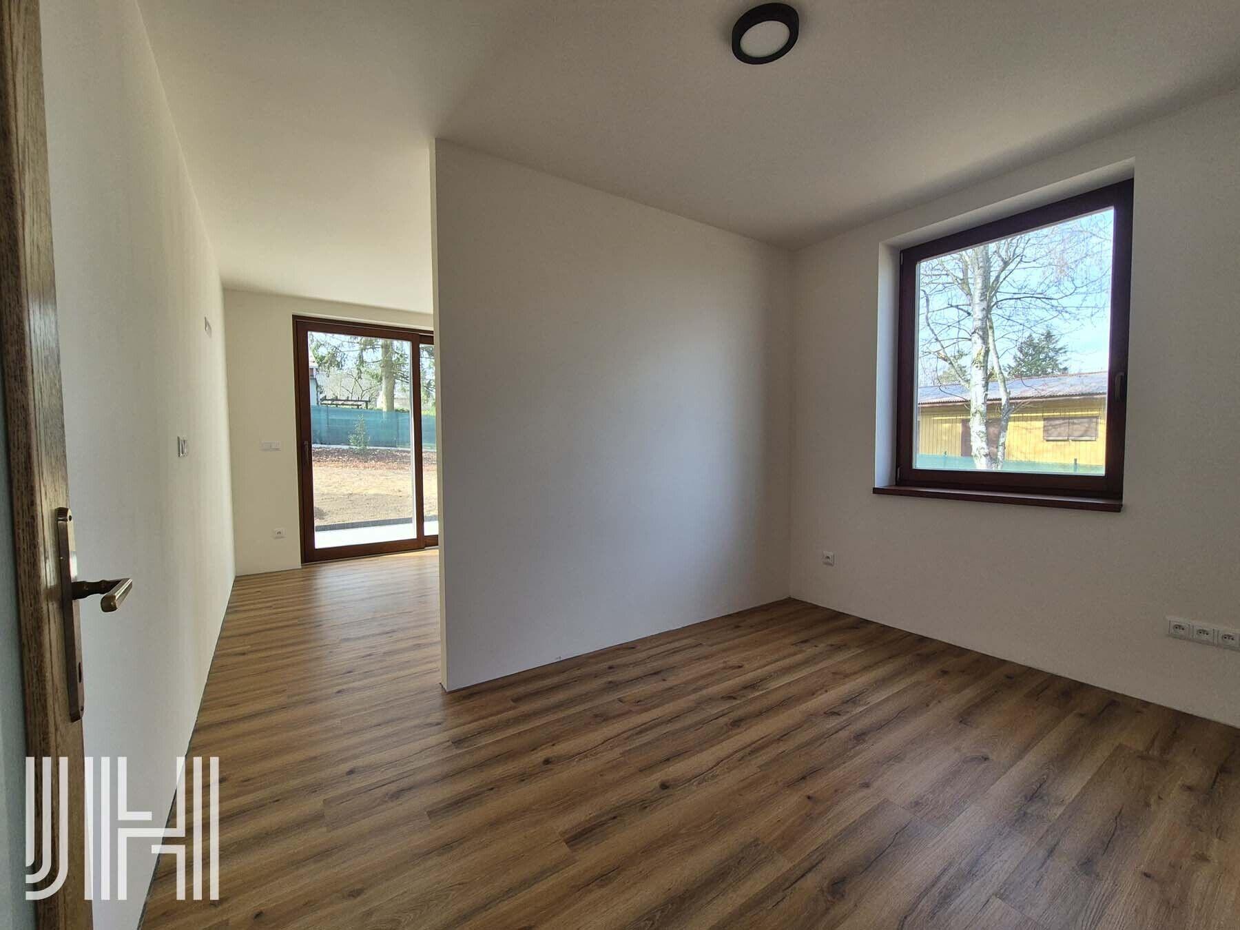 Nabízíme k pronájmu právě dokončenou novostavbu bungalovu na Plumlovské přehradě 5 km od Prostějova. Dům se nachází v rekreační lokalitě 5 min. od pláže, vel. 4+kk a podlahová plocha 165 m2 s dvojgaráží 45 m2 a parkovacími místy před domem. Dům má zádveří se šatnou a vstupem do garáže, prostorný exkluzívní obývací pokoj s prosklenou stěnou do zahrady a krbem, kuchyňskou linkou s designovým ostrůvkem a jídelnou. Po chodbě domu se dostanete dále do technické místnosti s prádelnou, samostatného WC, koupelny (vana, 2x umyvadlo, sprch. kout a WC) a dvou pokojů. Z jídelny je vstup do prostorného pokoje oddělenou šatnou, nebo pracovnou. Celý dům je orientovaný do zahrady na jižní a západní stranu. Dům je vytápěn podlahovým vytápěním se zdrojem tepelné čerpadlo včetně ohřevu teplé vody, voda z vlastní studny, kanalizace do jímky. Dům má vinylové dílcové podlahy, kuchyňskou linku včetně spotřebičů, vnitřní žaluzie, zabezpečovací zařízení. Zahrada je oplocená, vstup možný přes dům nebo bránou vedle domu, bude zatravněná, osázená keři a vzrostlými stromy s terasou přístupnou z obývacího pokoje. Podlaha v garáži bude dokončeny epoxidovou umyvatelnou stěrkou. PENB – A. Internetové připojení v ceně nájemného. Záloha na energie: 5.000 Kč/měs. Dům dokončen, ihned k nastěhování. Zast. plocha: 340 m2, zahrada 827 m2.