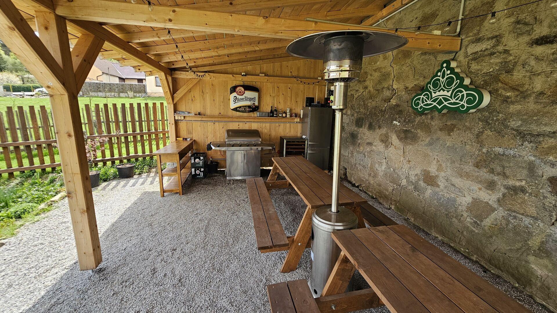 Novostavba domu spolu s dvorem a stodolou tvoří parcelu typu zastavěná plocha a nádvoří. Před domem byla zahájena stavba vyhřívaného skleníku, která by využívala teplo ze systému fotovoltaických panelů, se kterými je uvažováno v tech. přípravě ohřevu vody ze soustavy ústředního topení. Jako další zdroj tepla je využíván krb s výměníkem. Celý pozemek je nově oplocen. V zahradě nová krytá masivní pergola s venk. kuchyní, pípou a grilem.