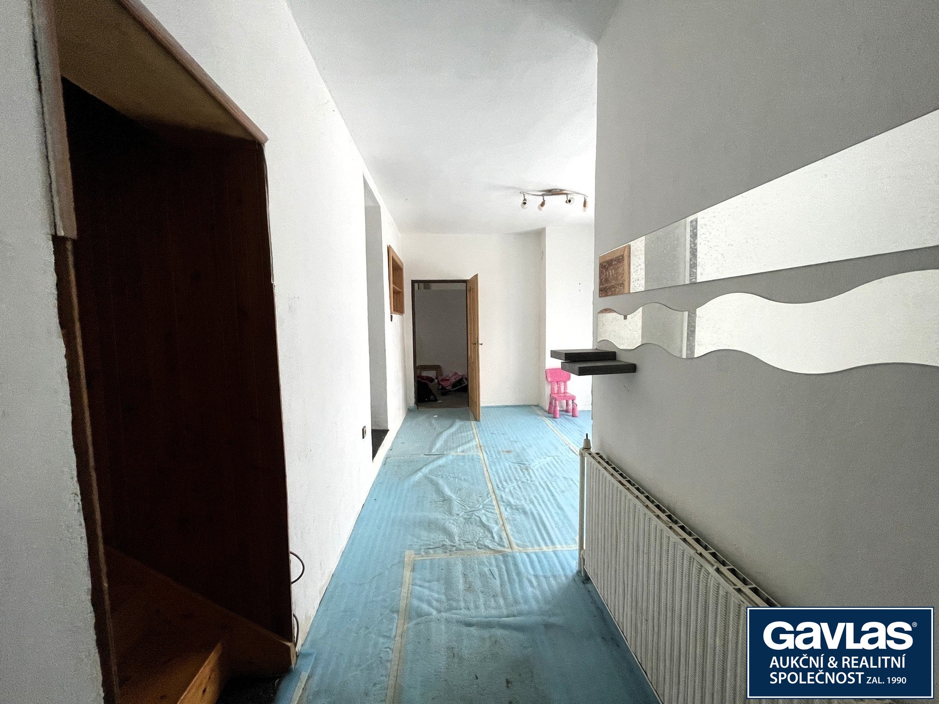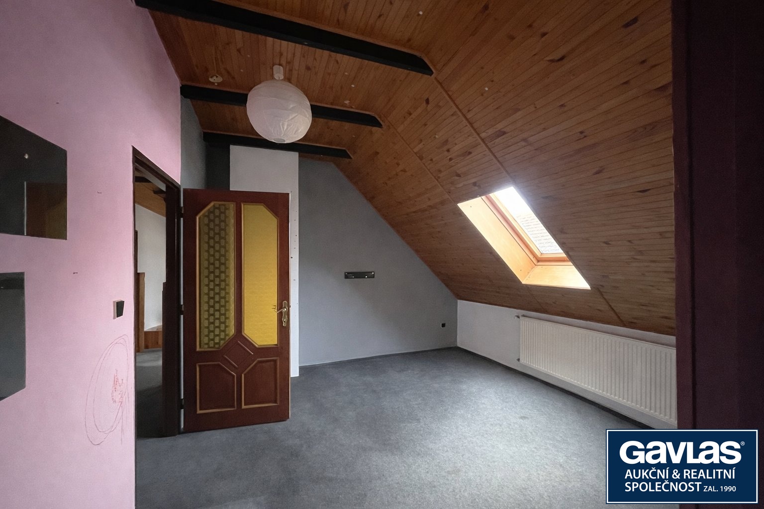 Dražba spoluvlastnického podílu ve výši 1/2 řadového rodinného domu o dispozici 4+kk s obytným podkrovím, částečně podsklepený, se sedlovou střechou a zatravněným dvorkem za domem. Celková výměra pozemku činí 293 m².