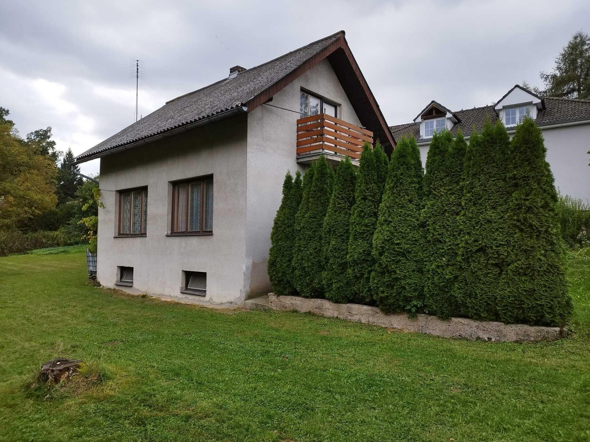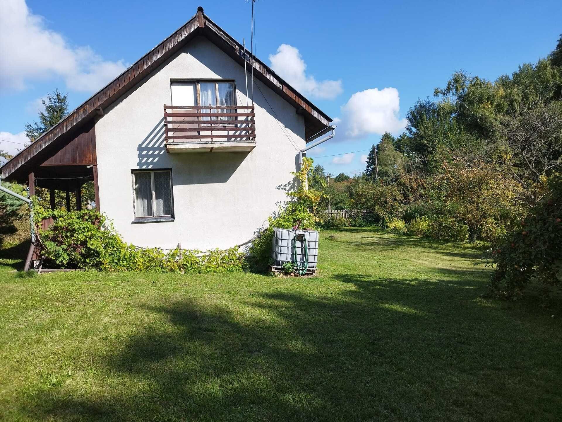 Zděná rekreační chata se zahradou 1188 m2 na okraji Srbína u Mukařova