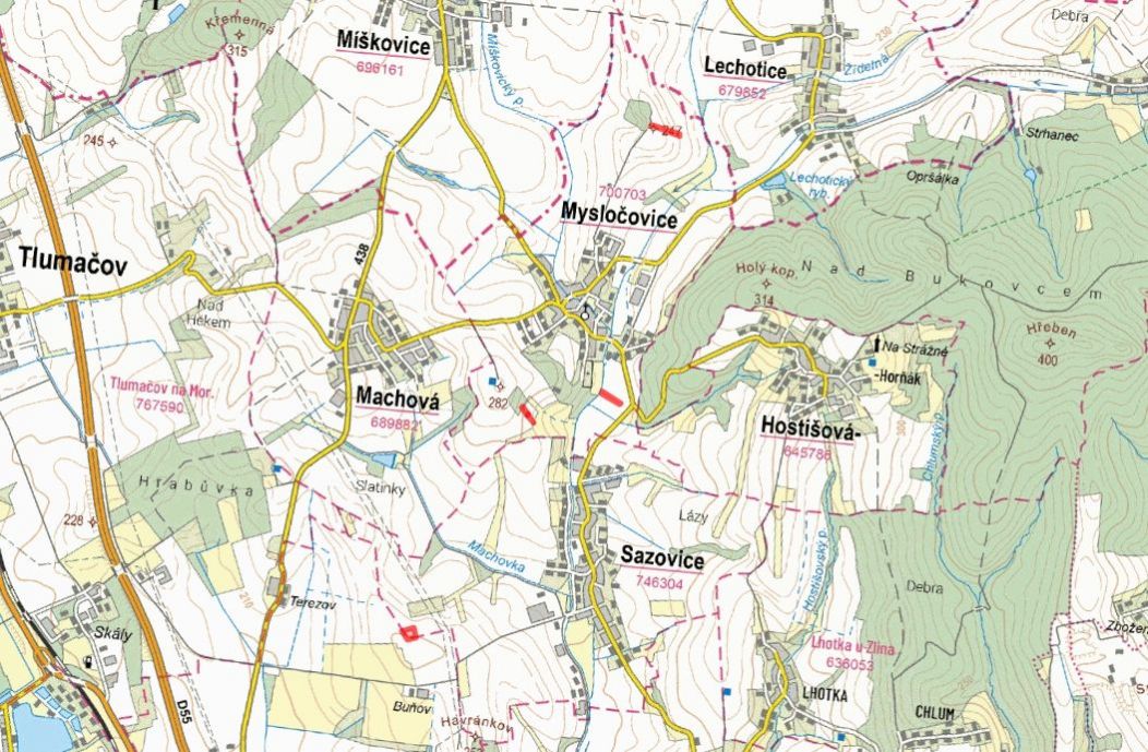 V katastrálních územích Mysločovice a Sazovice (okres Zlín) nabízím k prodeji soubor zemědělských pozemků ve výlučném vlastnictví.