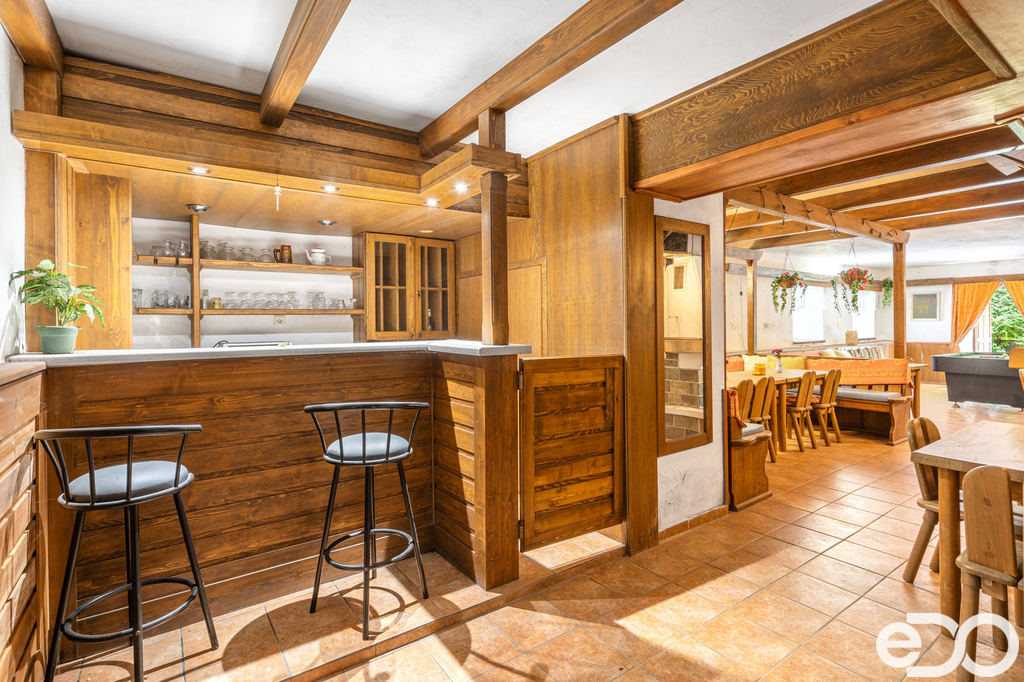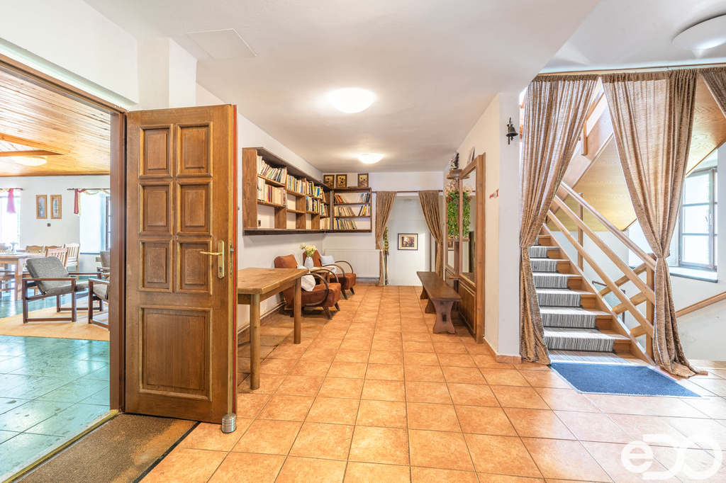 Penzion se skládá ze dvou budov, které poskytují ubytování s celkovým počtem až 40 lůžek v sedmi pokojích a třech apartmánech. Každý pokoj je vybaven 2-4 lůžky a vlastním sociálním zařízením. Dále je zde velká jídelna s kuchyní, byt pro správce, sauna, bar s hernou, skladové prostory, konferenční místnost či menší tělocvična pro pořádání jóga meetingů, apartmán se zimní zahradou a další a další místnosti. Celou nemovitost si můžete projít v klidu domova prostřednictvím virtuální prohlídky.