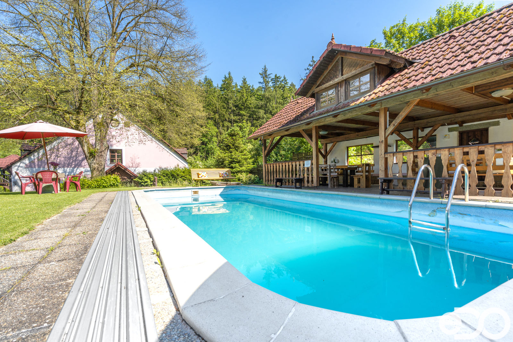 Příslušenstvím je venkovní bazén s posezením, část s venkovním grilem a pozemky vhodné pro parkování hostů či pozemky s možností využití pro stany. Nemovitost má své vlastní trafo, hluboký vrt pro zásobování vodou, vytápění je řešeno kotlem na tuhá paliva s automatickým nakladačem, odpad je řešen jímkou.