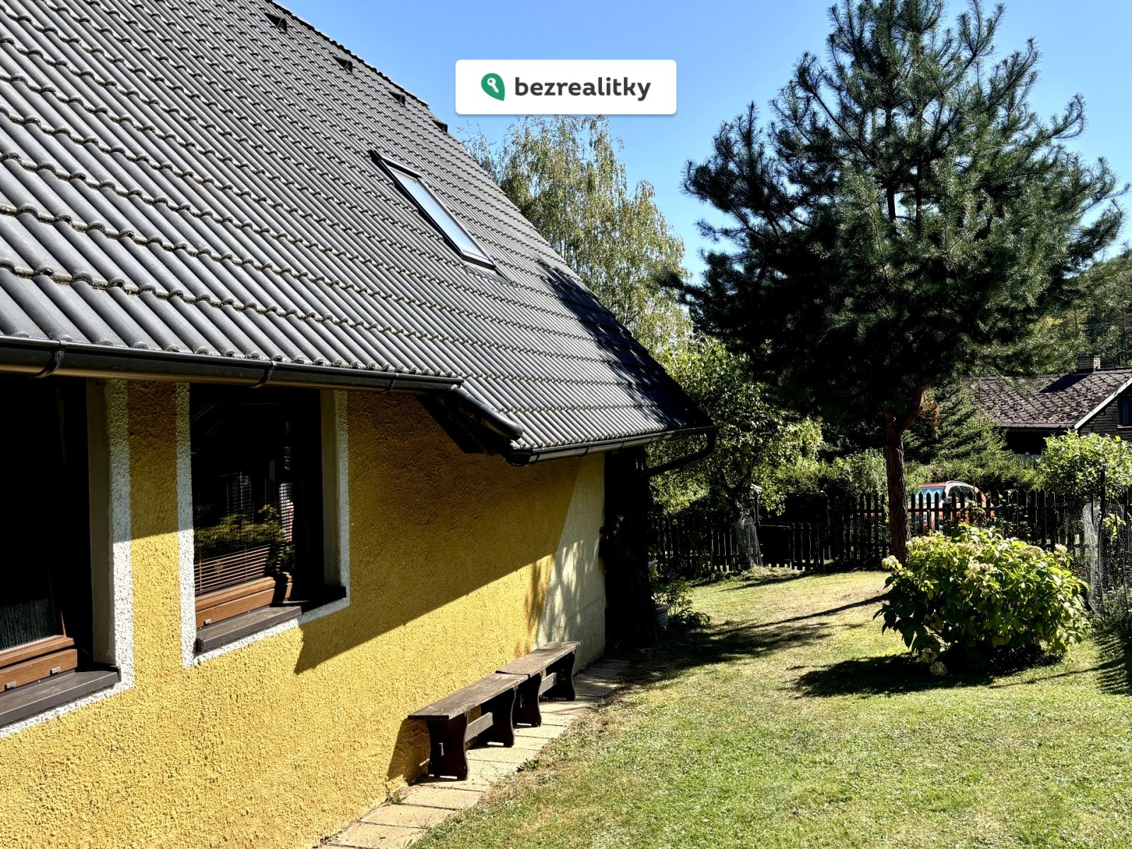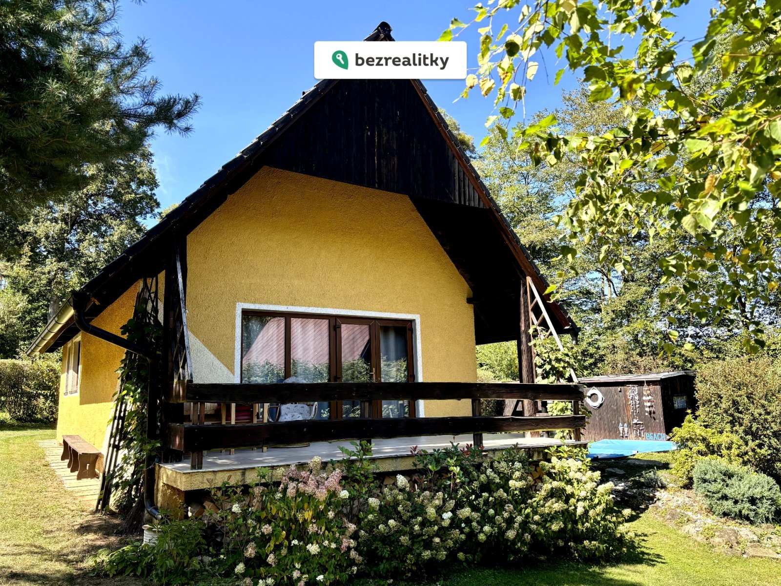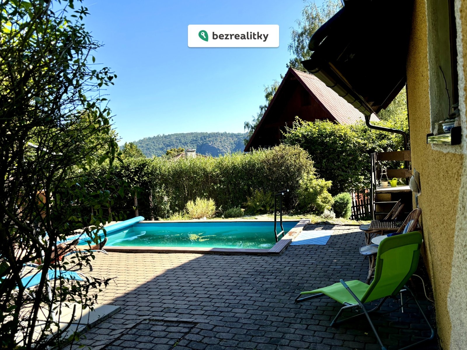 Pozemek okolo chaty včetně kousku lesa se vzrostlými stromy o celkové výměře 760 m² nabízí rozmanité využití. V zahradě s ovocnými stromy a keři najdete oddělenou sekci se zakrývatelným bazénem o rozměrech 5 x 3 m a vlastní filtrací. Prostor kolem bazénu nabízí perfektní zázemí pro relaxaci s dostatkem soukromí i výhledem do korun stromů a na okolní krajinu. Atmosféru tady dotváří hausbót, který v současnosti slouží jako praktická kůlna. V letních měsících vás potěší také skleník jako stvořený pro pěstování vlastní zeleniny. Na pozemku se nachází vlastní studna s vodou v kvalitě kojenecké vody. V zadní části zahrady se pak nachází ohniště, udírna s dřevníkem a posezení, odkud si můžete vychutnávat nádherný výhled. Večer se často na louce pod chatou pasou srnky, což ještě umocňuje pocit propojení s přírodou.