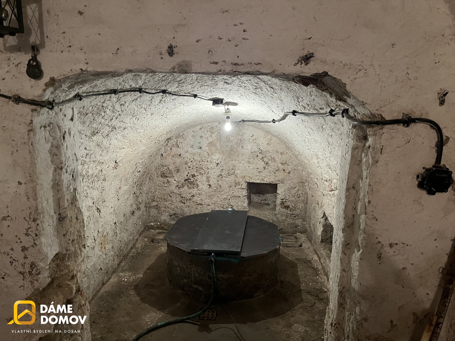 Nemovitost také nabízí unikátní klenbový sklep o rozloze přes 150 m² s původní kamennou studnou. Sklep má valenou klenbu a díky stabilní teplotě a charakteru prostoru se hodí například pro skladování archivního vína, umělecké ateliéry či jiné netradiční využití.