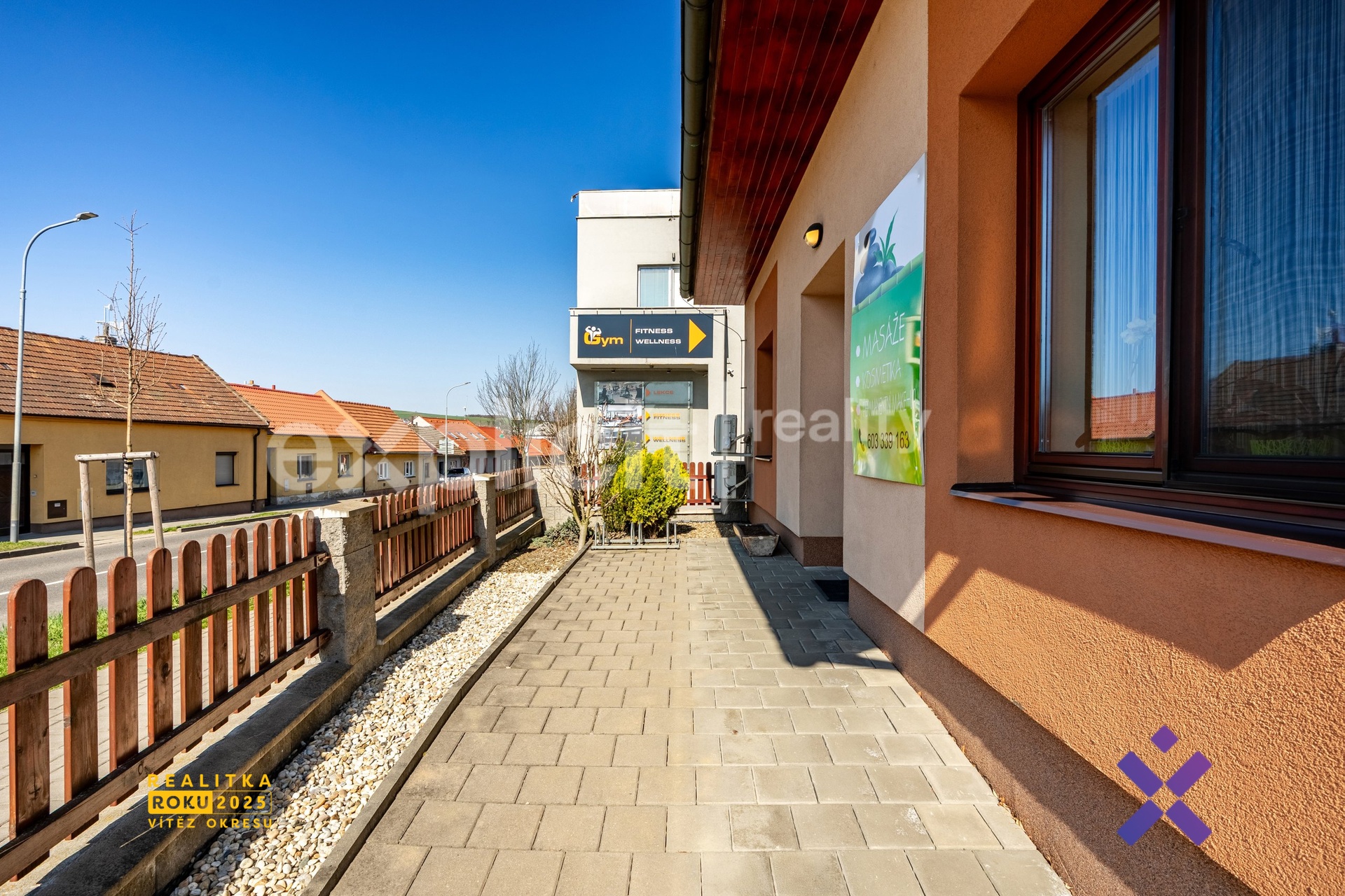 Nebytová část má vlastní samostatný vstup a zároveň je propojená s obytnou částí domu, což otevírá široké možnosti využití. Dispozice zahrnuje 2 samostatné místnosti, menší kuchyňku a toaletu. Prostor je aktuálně využíván pro masáže a kosmetické služby a je připravený k okamžitému podnikání. Zároveň nabízí potenciál pro úpravu na samostatnou bytovou jednotku k pronájmu nebo přizpůsobení dle vlastních potřeb.