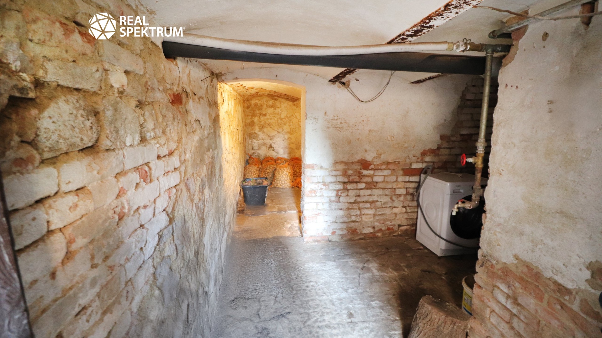 Atmosféra typického venkova je všude kolem. Dům působí klasickým, až nostalgickým dojmem – široká průjezdová brána, původní fasádní zdobení, hospodářská část s klenbami a zahrádka za domem. Právě tyto prvky dávají nemovitosti charakter a duši, kterou dnes mnoho lidí hledá.