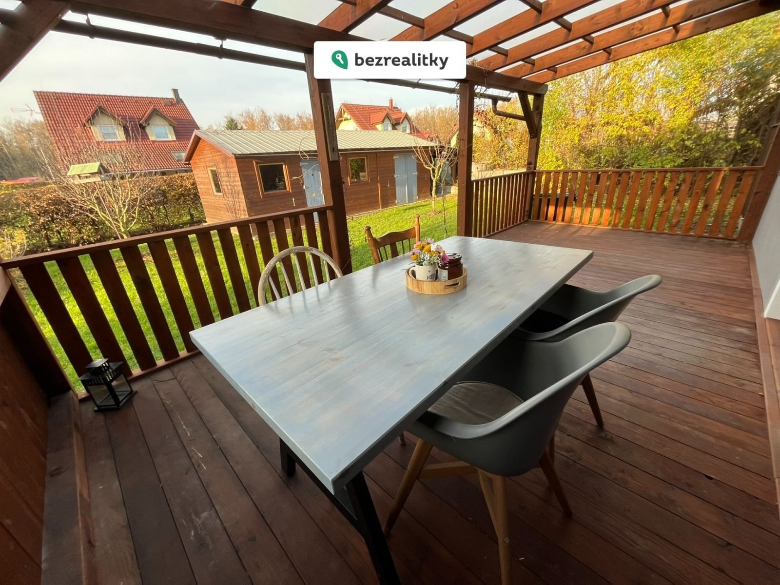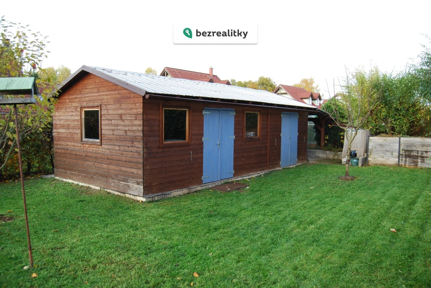 U domu je dřevěná kůlna se dvěmi místnostmi, kryté posezení v zastřešené verandě, udržovaná zahrada.