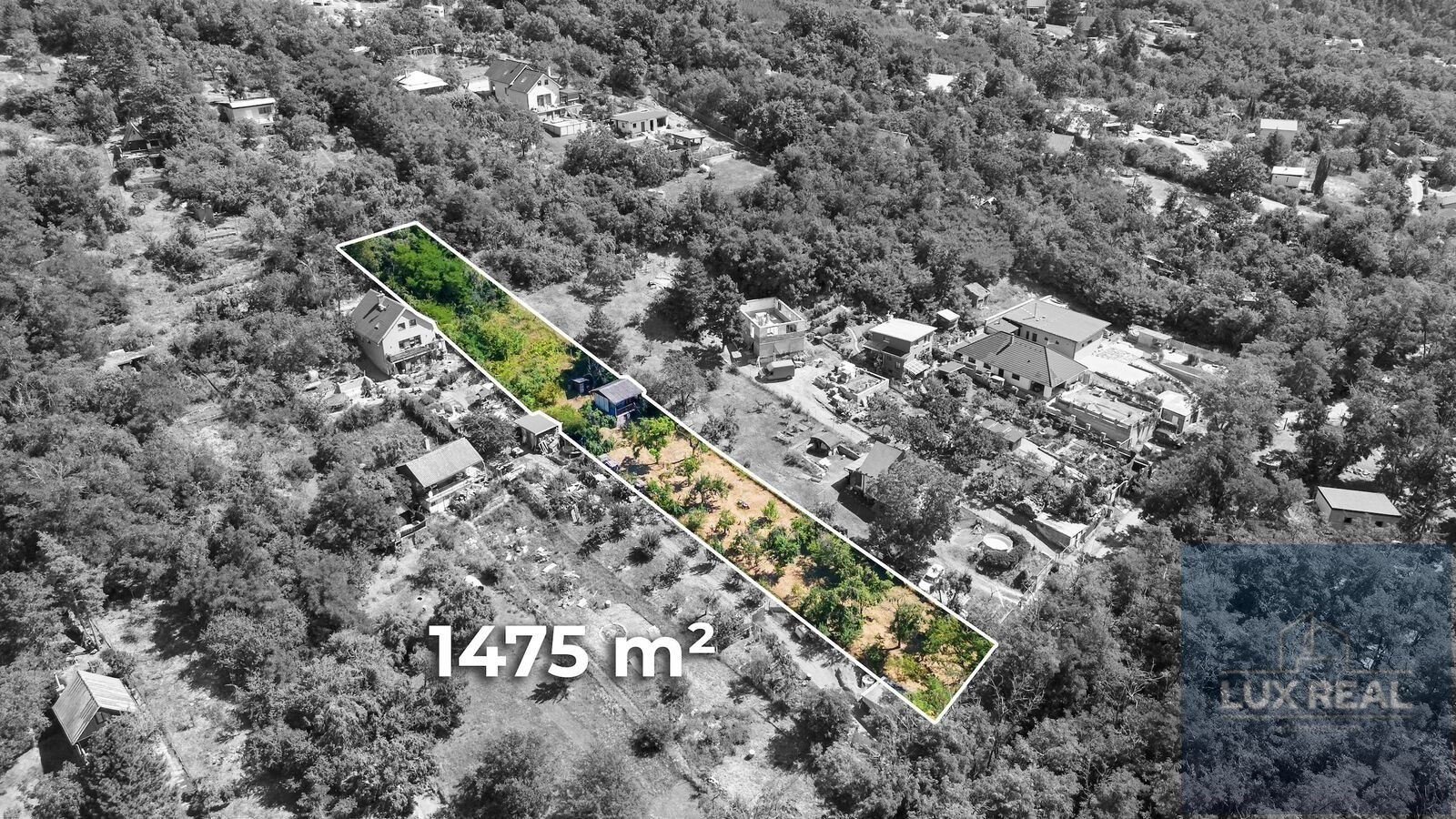 Celková výměra pozemku je 1457m². Šíře pozemku 13m a délka 112m.