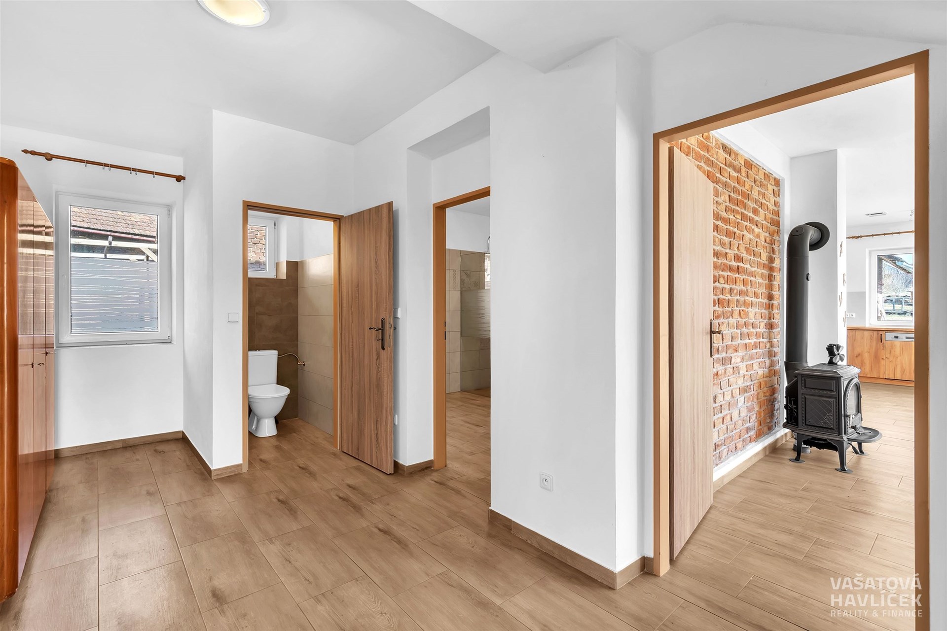 Nepodsklepený rodinný dům s podkrovím a obytnou plochou přibližně 154 m² byl zkolaudován v roce 2023. Nosné konstrukce i vnitřní příčky jsou z plných pálených cihel, střecha je sedlová s bezúdržbovou hliníkovou falcovanou krytinou. Dům je kompletně zateplený – obvodové zdivo, konstrukce krovu i stropy minerální vatou, podlahy polystyrenem. Okna jsou plastová s izolačním dvojsklem.