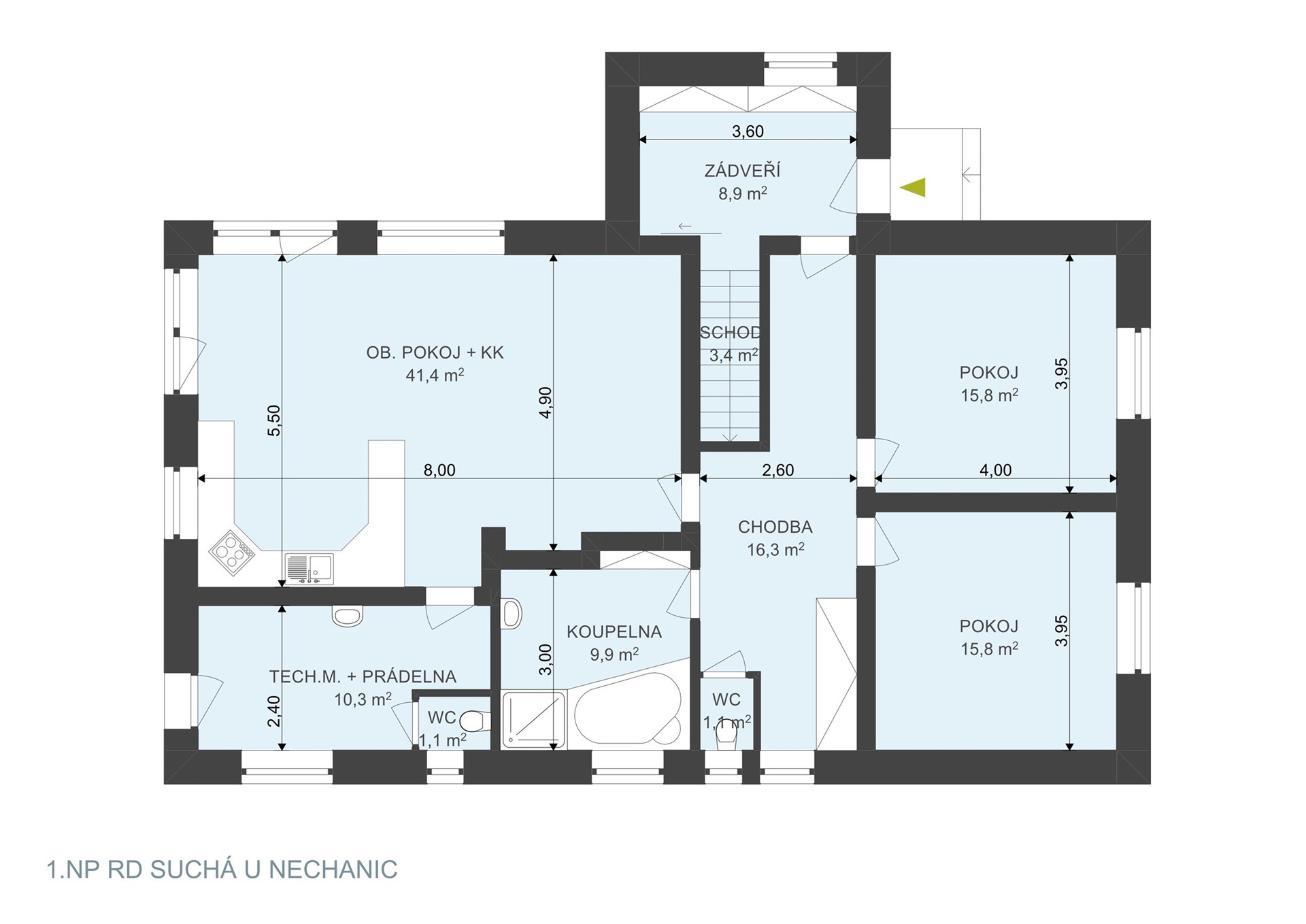 V obci Suchá, vzdálené přibližně 4 km od města Nechanice, Vám nabízíme k prodeji novostavbu rodinného domu o dispozici 4+kk, připravenou k okamžitému nastěhování. Dům se nachází v původní zástavbě rodinných domů a nabízí klidné bydlení s dobrou dostupností okolních měst. Do Nechanic dojedete za 6 minut, do Hradce Králové za cca 15–20 minut. Dobré napojení je na dálnici D11 (cca 17 min) i rychlostní silnici směrem na Hořice (12 min) a Jičín (30–35 min).