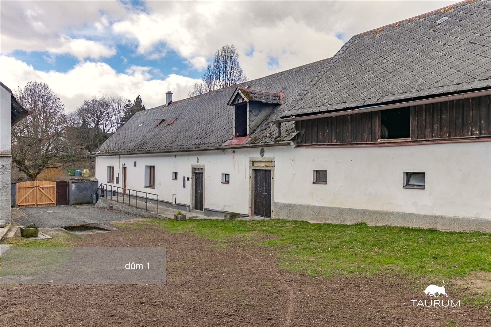 Na dům navazuje několik hospodářských budov a rozsáhlé venkovní prostory. Součástí je prostorná dílna s přivedenou elektřinou, využitelná i jako skladovací prostor. Na ni navazuje stodola. Půdní prostor nad prvním domem je rozlehlý a sloužil ke skladování sena. Střešní krytinu tvoří kombinace eternitu a pálených tašek. Dle vyjádření majitele do střechy nezatéká, ačkoliv její stav již není ideální. Na pozemku se nachází i venkovní krb s udírnou.
