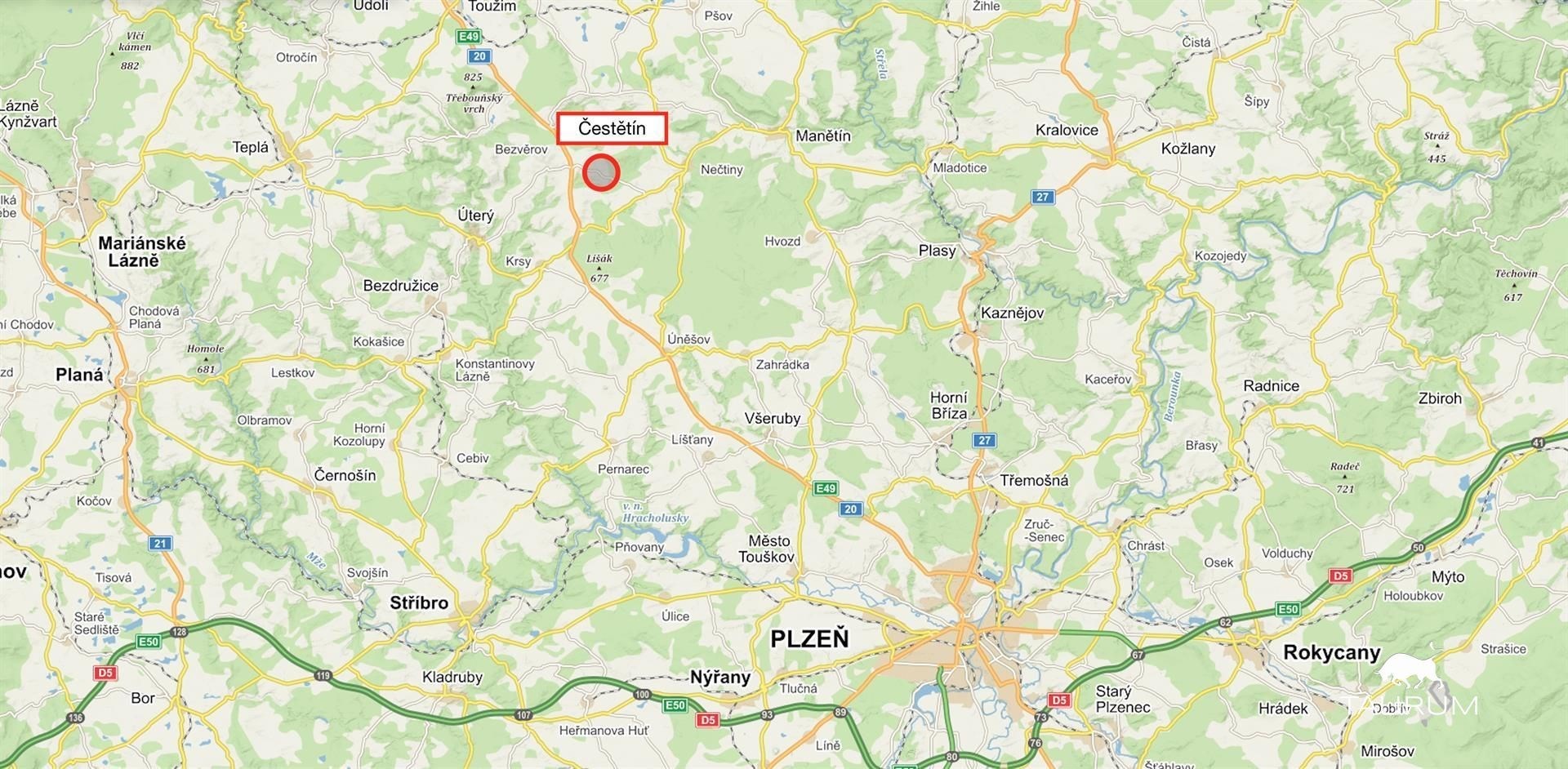 Čestětín je obec ležící v krásné přírodě v oblasti tmavé oblohy, kde je možné dobře pozorovat noční oblohu bez světelného smogu, cca 25 minut jízdy od okraje Plzně. Celý pozemek u domu je stavební.