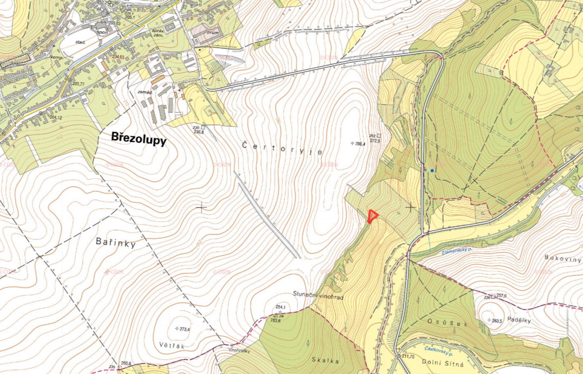Zemědělsky užívané parcely mají zajištěný přístup a nacházejí se v blízkosti menších vodních toků.