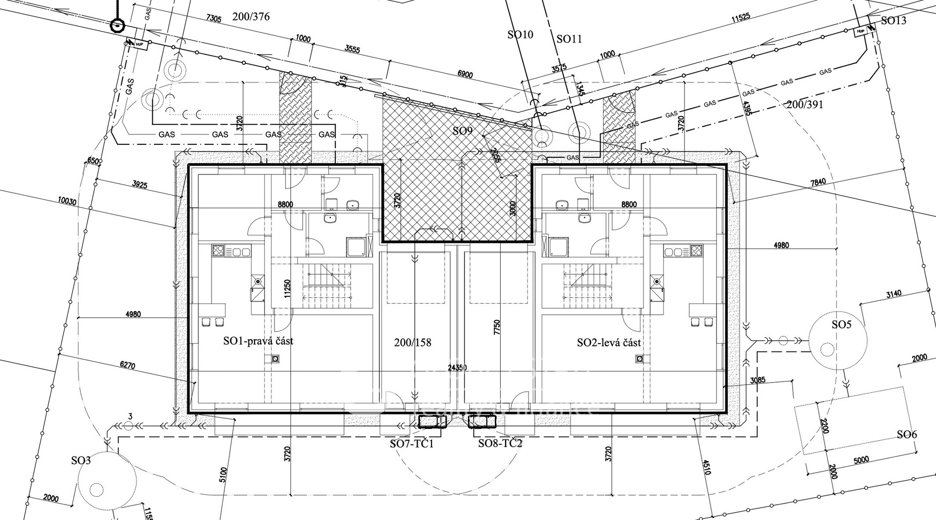 Dům bude připojen na veškeré dostupné sítě – elektřinu, plyn, vodu, kanalizaci a optiku.