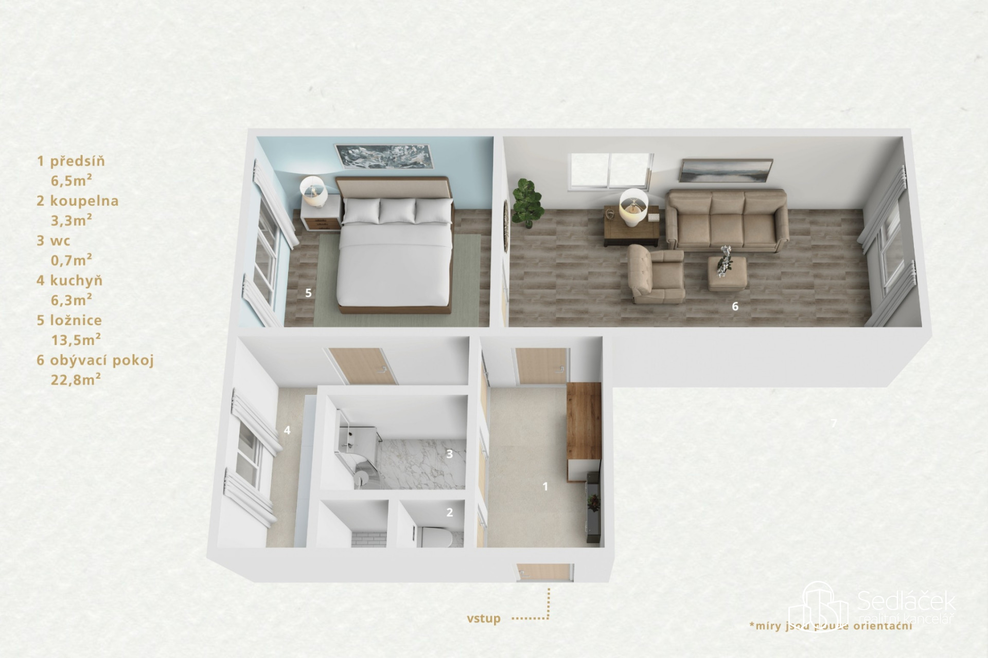 | Dispozice/podlahová plocha: | 2+1/57 m² |