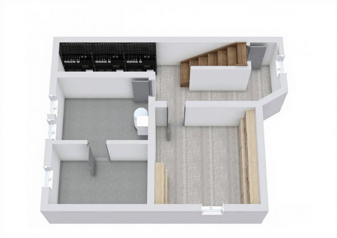 spíše menší bytový dům se třemi samostatnými jednotkami a prostornými chodbami.