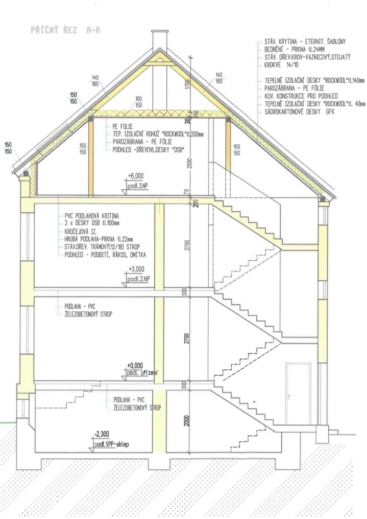 Okna jsou nová – plastová, v podkroví dřevěná.