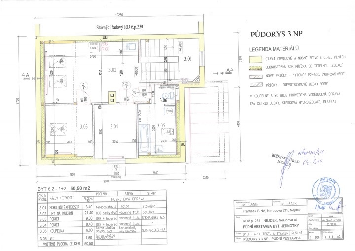 3. NP – podkrovní byt 3kk (50,5 m²)