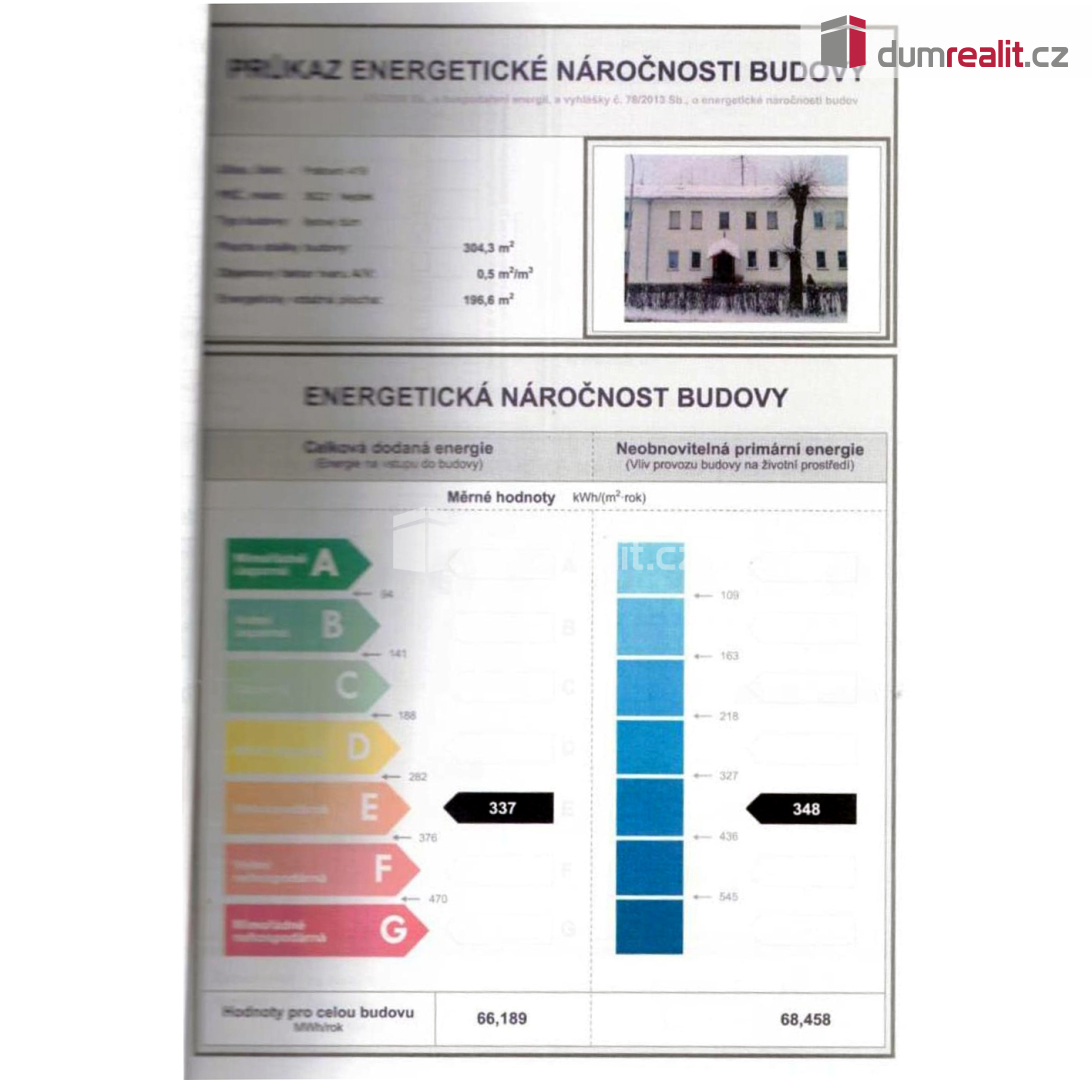 Dle platné legislativy je pro dům zpracován PENB, kdy stavba je zařazena do energetické třídy „E“ – úsporná. Cena je včetně právního servisu. Tuto nemovitost lze hradit hypotečním úvěrem, který Vám rádi pomůžeme vyřídit v našem hypotečním centru. Ev. číslo: 653121.