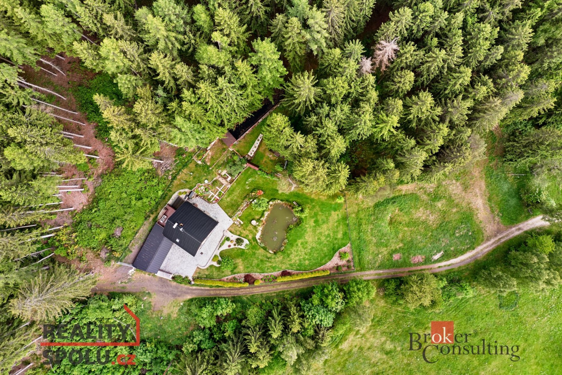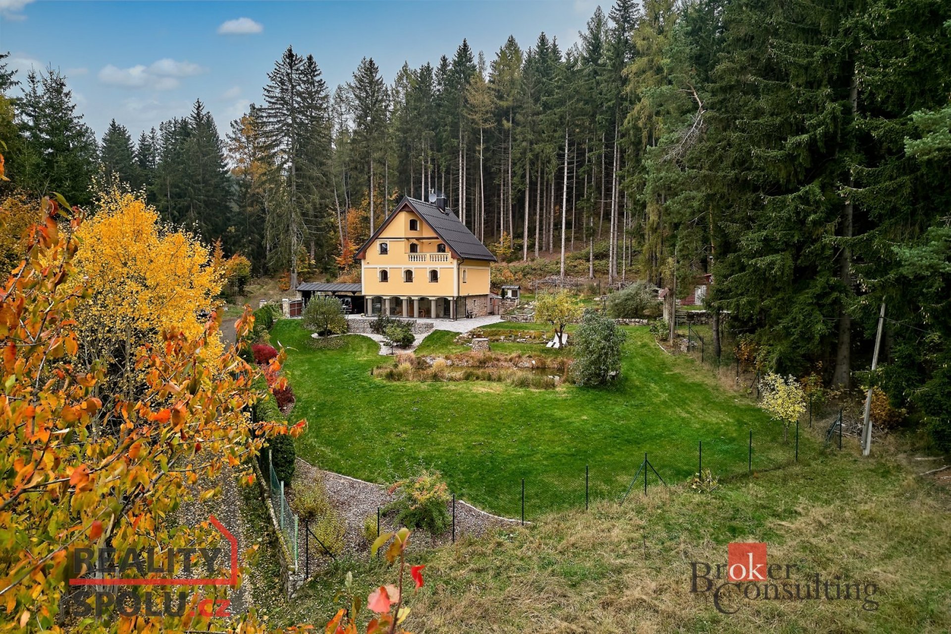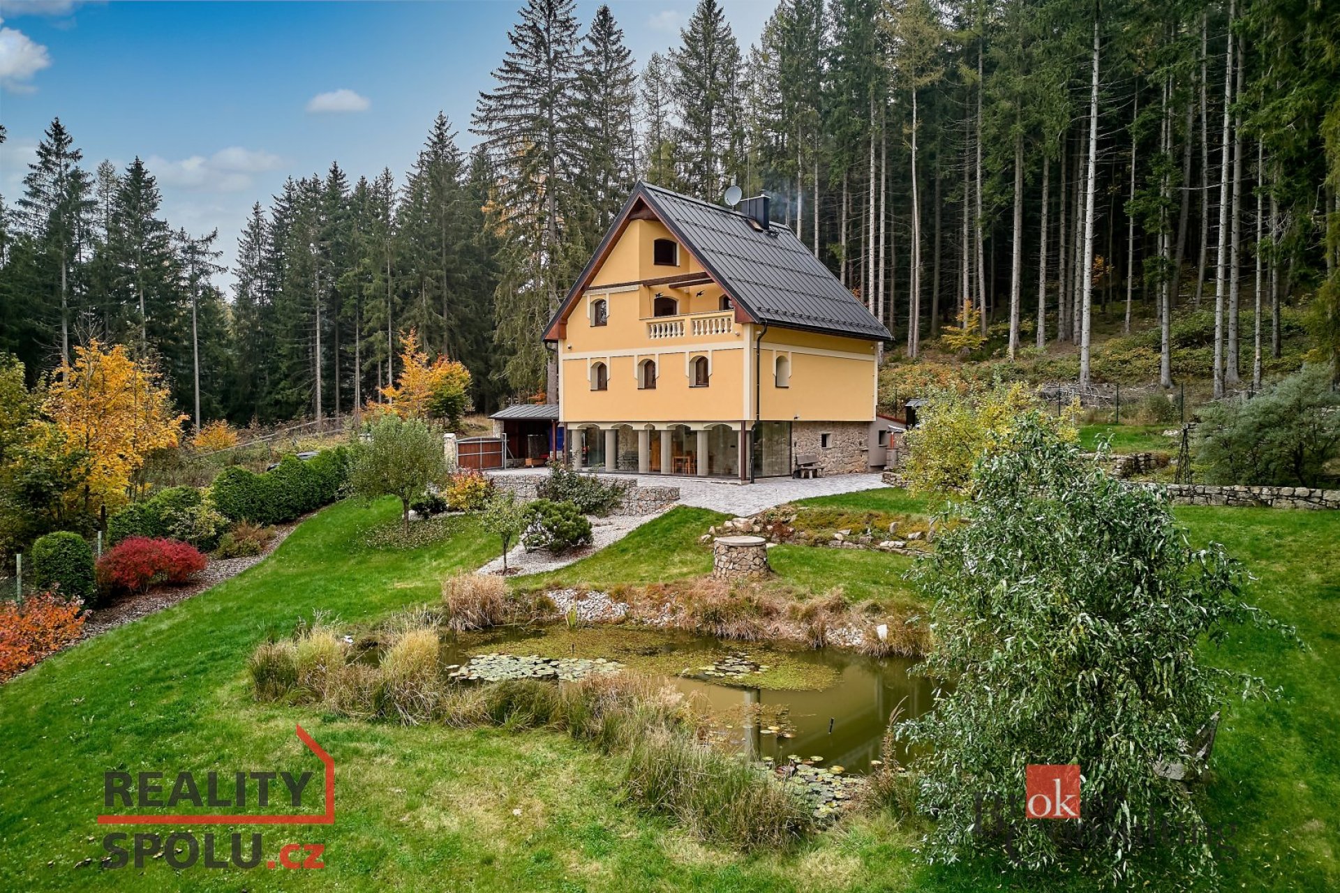 Jezírko uprostřed zeleně, zahrada jako ze starého herbáře, vůně dřeva a bezpečí zdí, které znají jen lásku.
