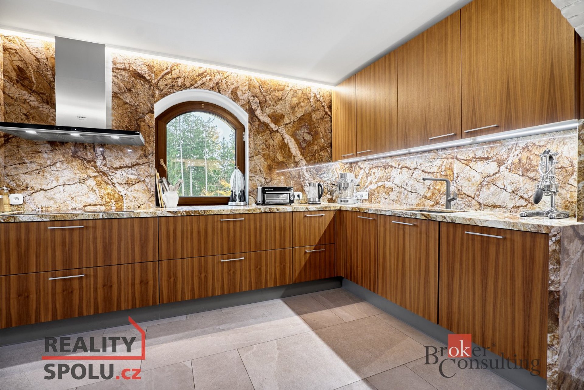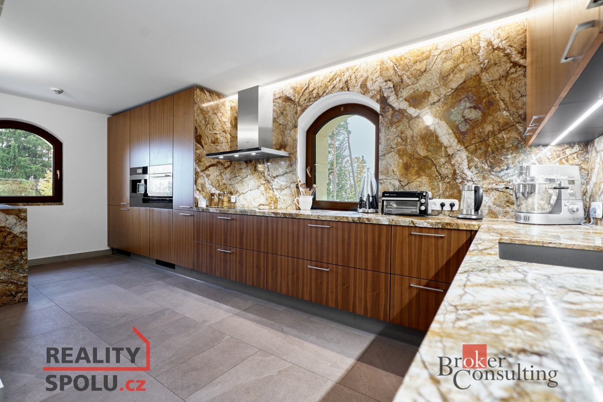 Kuchyň je poctivá. Ručně dělaná, s kamennou deskou a spotřebiči, které nezklamou. A podlahy? Ty znají jen bosou nohu a domácí pohodu, díky podlahovému vytápění.