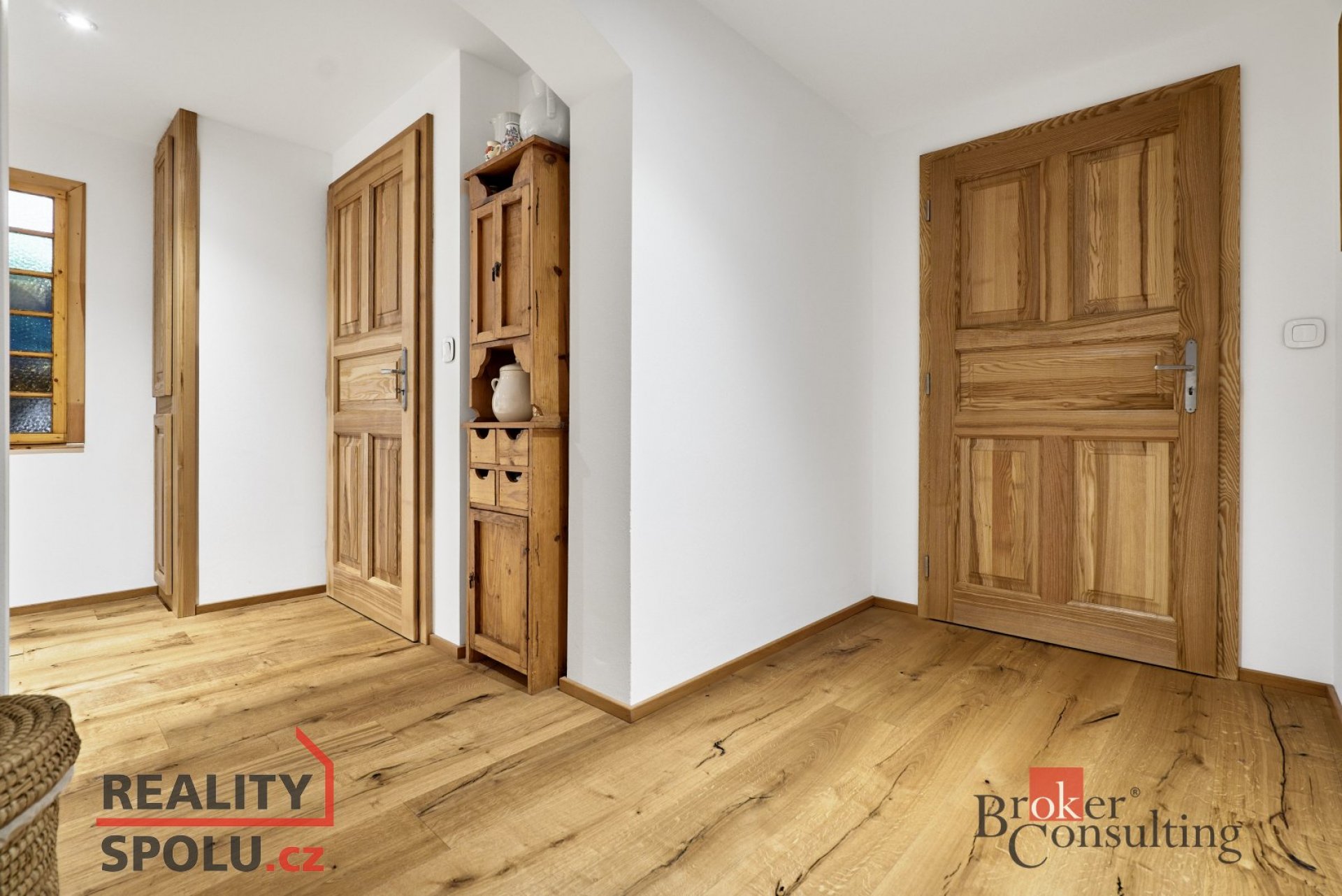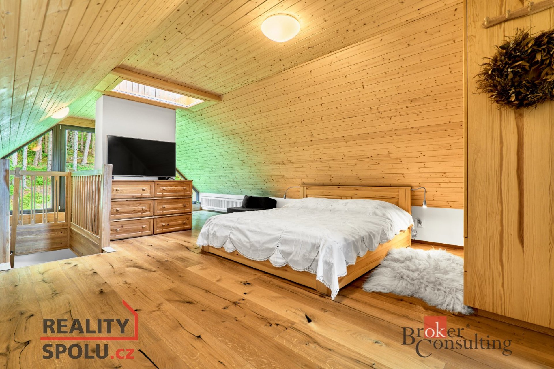 Na první pohled vás obejme vůně dřeva. Jasan tu není dekorací, ale duší prostoru. Schodiště, zárubně, dveře… vše navazuje jedno na druhé jako melodie, která ladí s přírodou za okny.