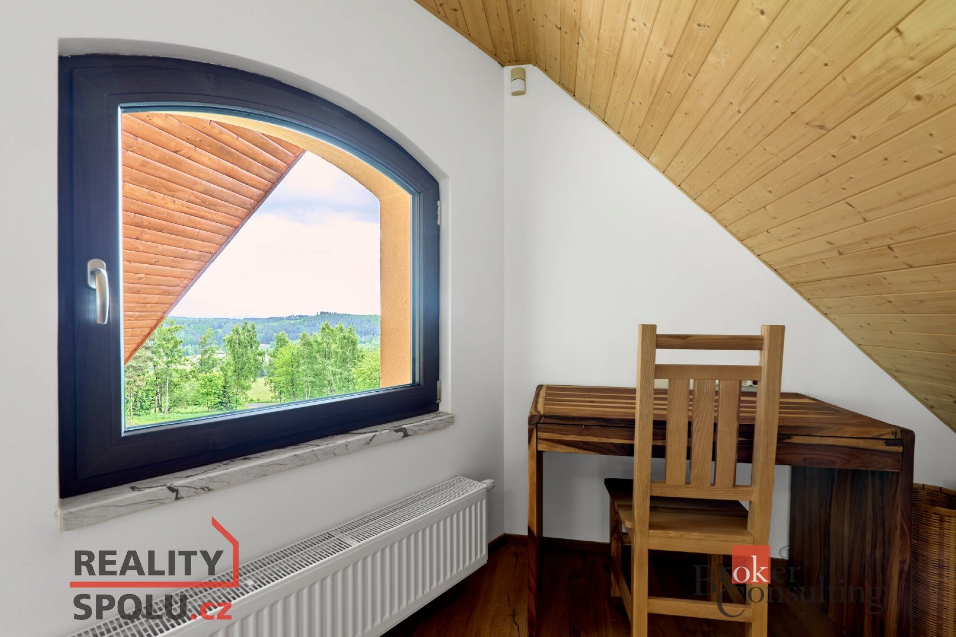 Čtyři podlaží propojená dřevěným schodištěm z jasanu, 231 m² užitné plochy a přesto útulno, v podkroví okno do korun stromů. V každém koutě tohoto domu je cítit, že tu někdo věděl, co dělá.. a dělal to pro sebe.. srdcem.