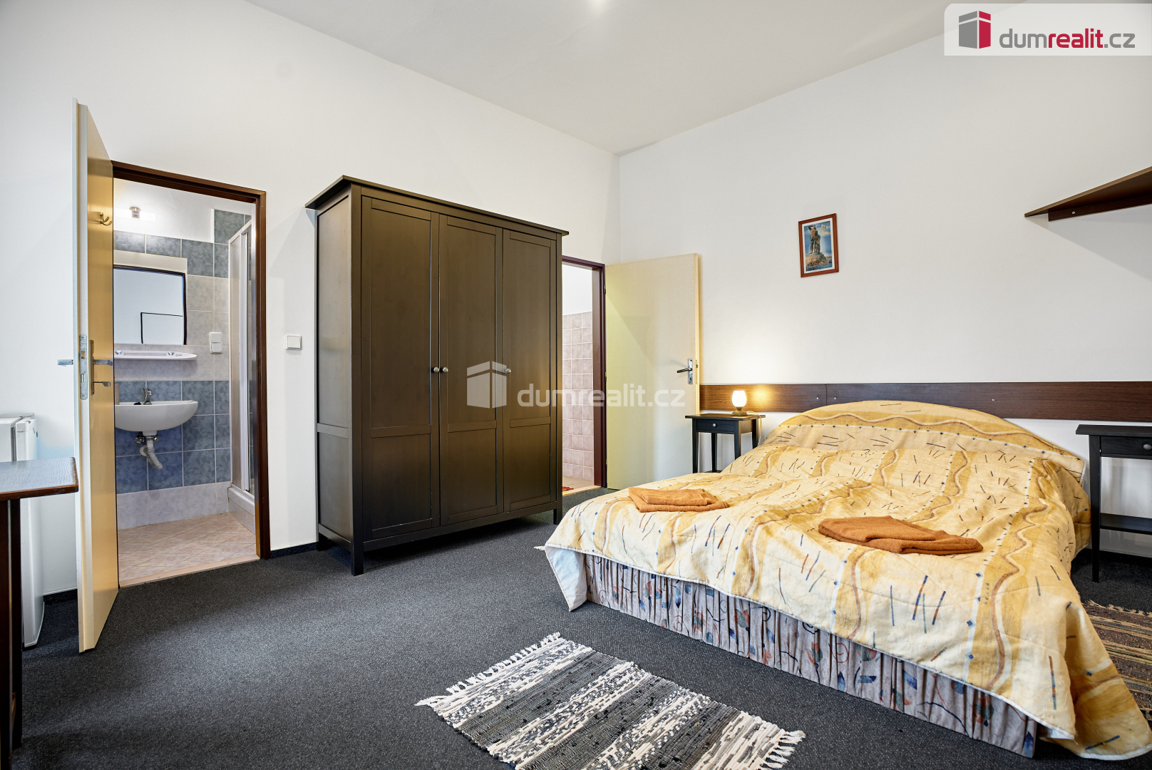 Naše společnost Vám zprostředkuje prodej zavedeného penzionu v krušnohorské obci Nejdek. Dům byl v roce 1997 kompletně zrekonstruován, je napojen na všechny inženýrské sítě a vytápěn je plynovým kotlem. V přízemí jsou dva samostatné pokoje se sociálním zařízením a jeden s kuchyňkou, dále garáž, prádelna a vstup do sklepa, kde je umístěn plynový kotel se zásobníkem. V 1. patře domu jsou 3 samostatné dvoulůžkové pokoje s příslušenstvím. Ve 2. patře je byt 2+1 (4 lůžka), který byl vybudován před 5 lety. V tomto patře je i vstup na půdu, která je využívána jako odkládací prostor. Za domem je terasovitá zahrada s možností vstupu do lesa na Křížovou cestu. Veškerá potřebná občanská vybavenost je v obci snadno dostupná. V blízkém okolí je řada lyžařských a sportovních středisek, turistické, běžecké a cyklistické trasy. Tuto nemovitost lze hradit úvěrem, který Vám rádi pomůžeme vyřídit v našem finančním centru. Vzhledem k tomu, že před zadáním do inzerce nebyl vyhotoven PENB, je tento byt v souladu s platným zákonem zařazen do energetické třídy G. Ev. číslo: 648655.