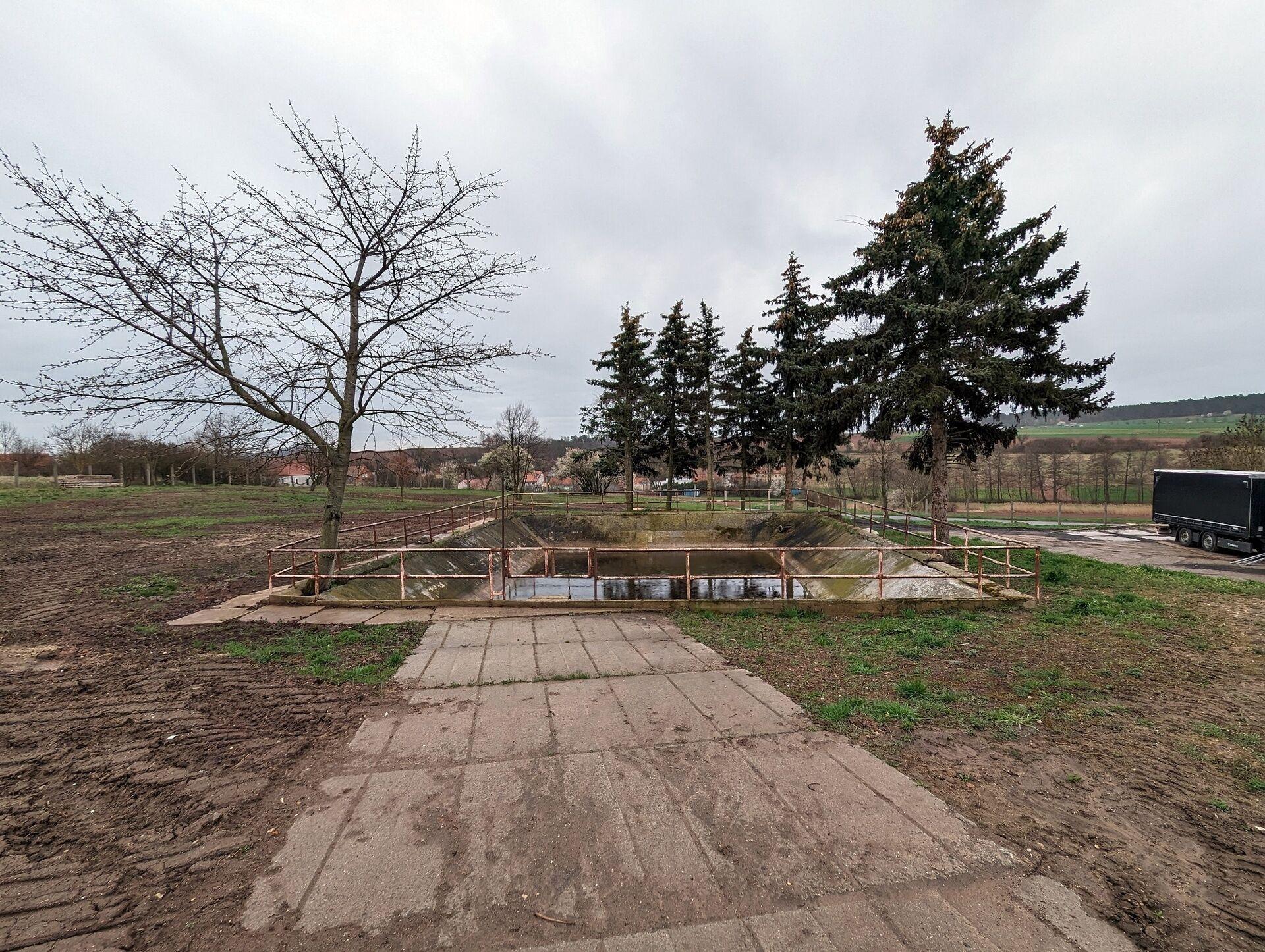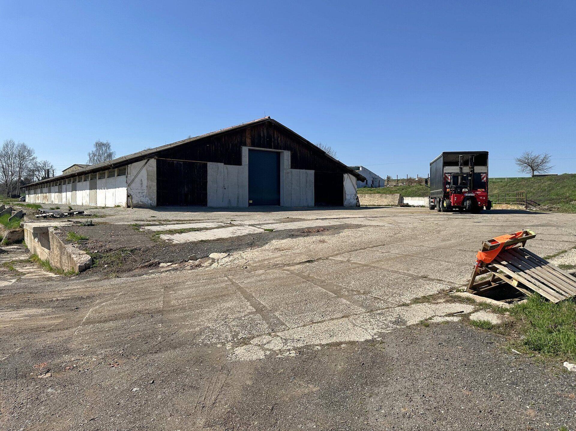 Prodáme část vyčištěného zemědělského areálu, nyní užívaného pro skladování. Na pozemcích se nachází skladová hala, betonové areálové komunikace a požární nádrž. Na plánku vyznačeno jako část “A”.