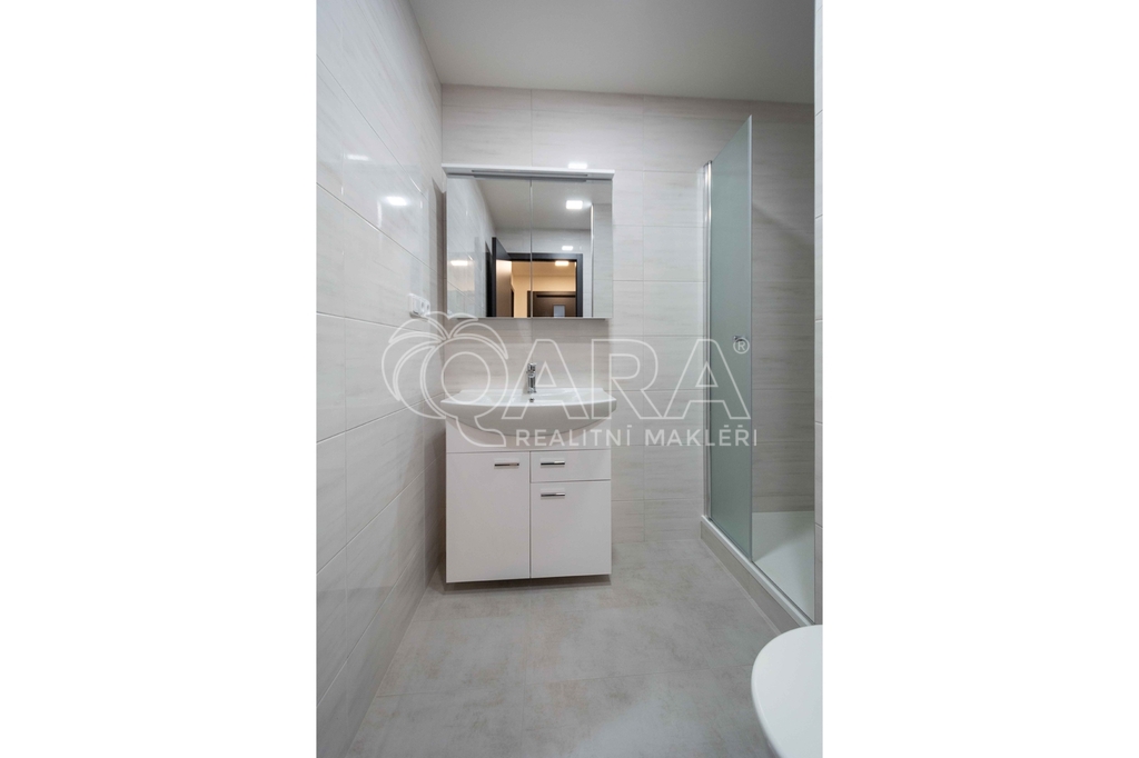 Vybavení bytu na fotografiích je součástí podnájmu: kuchyňská linka včetně spotřebičů: myčka, mikrovlnná trouba, el. trouba, indukční deska, digestoř, americká lednice s mrazákem. V koupelně starší pračka na dosloužení. Na chodbě bude dodělaná vestavná skříňka.